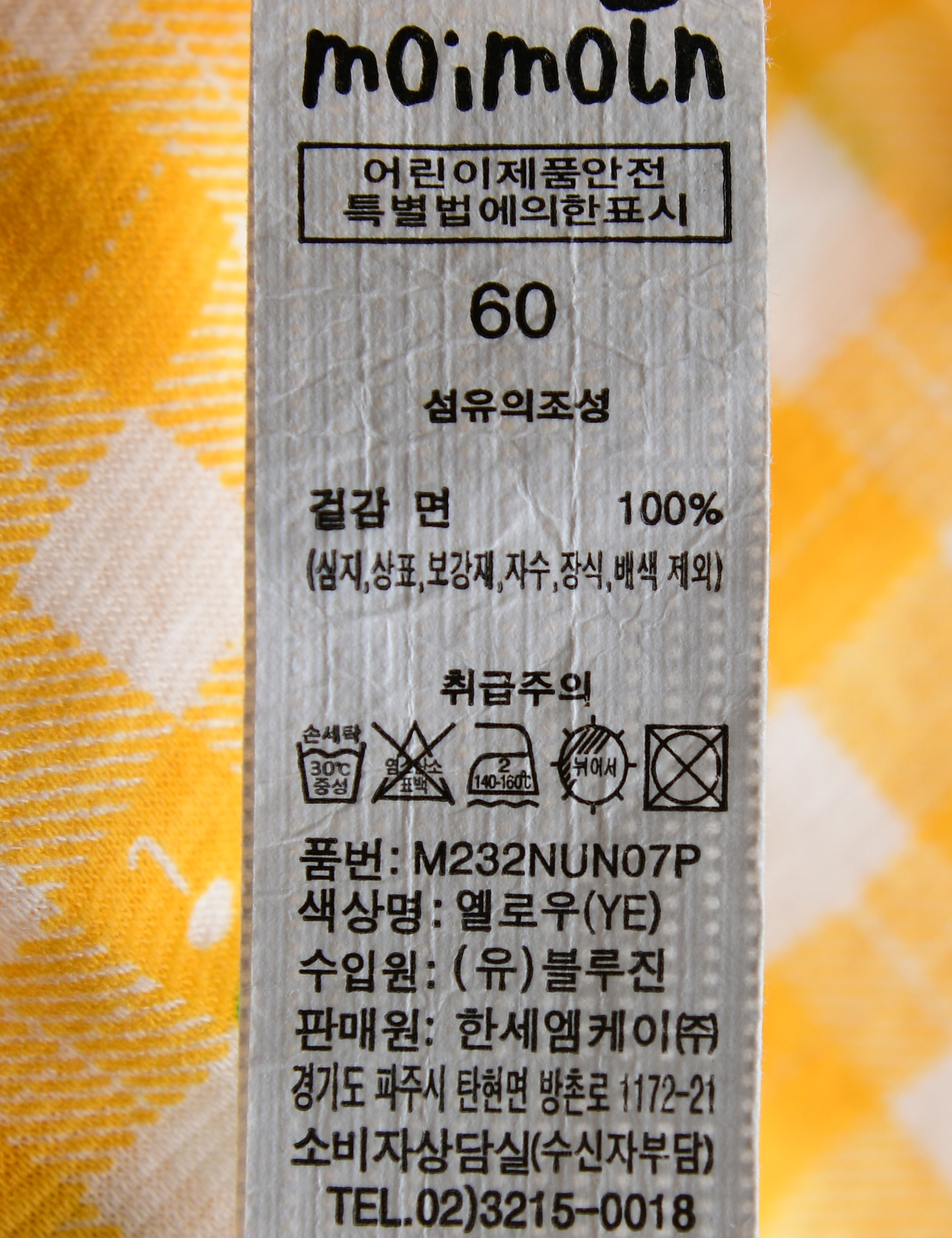 | 세탁방법 및 취급시 주의사항 | 본 세품은 손세탁 하십시오(케어라벨 참고) |