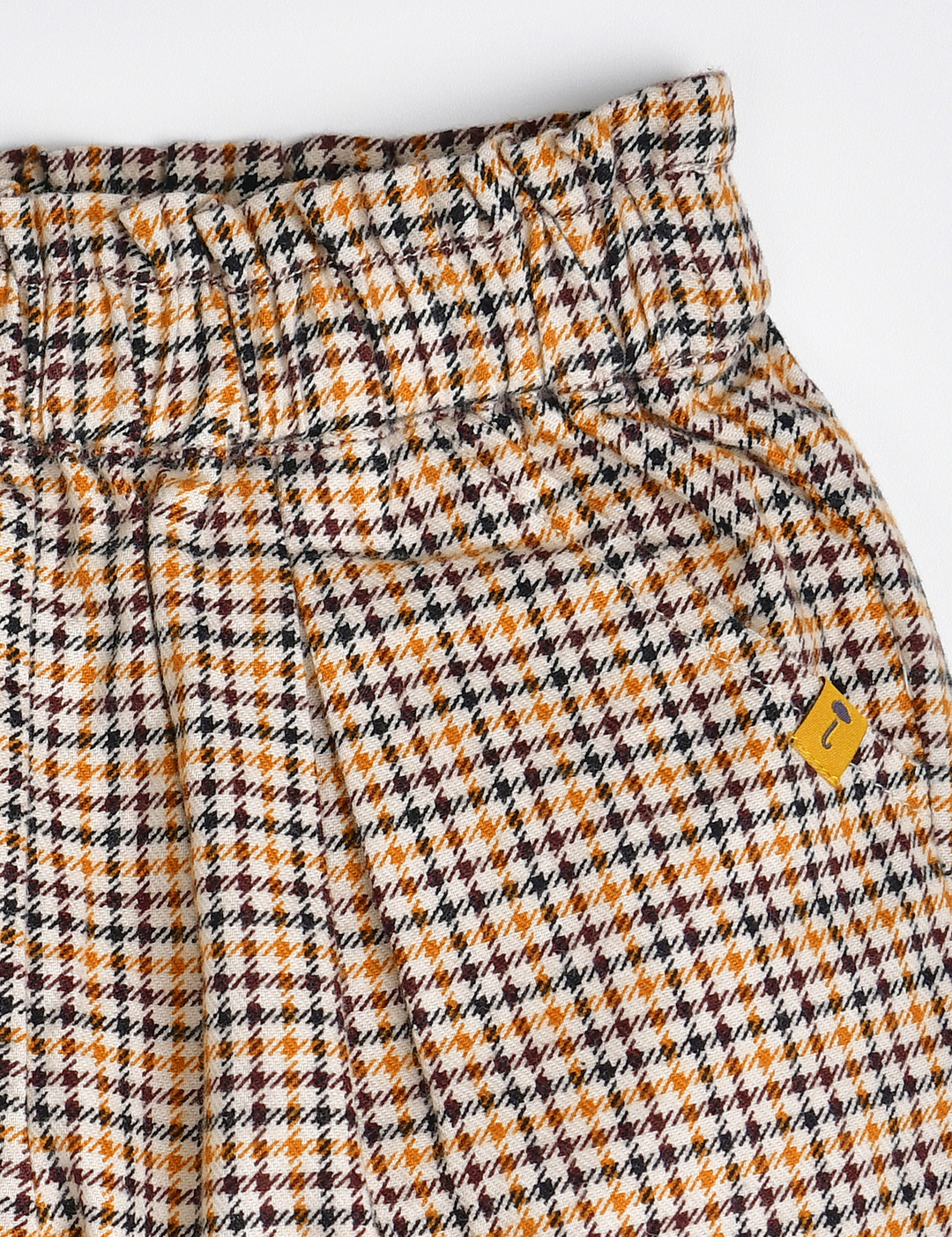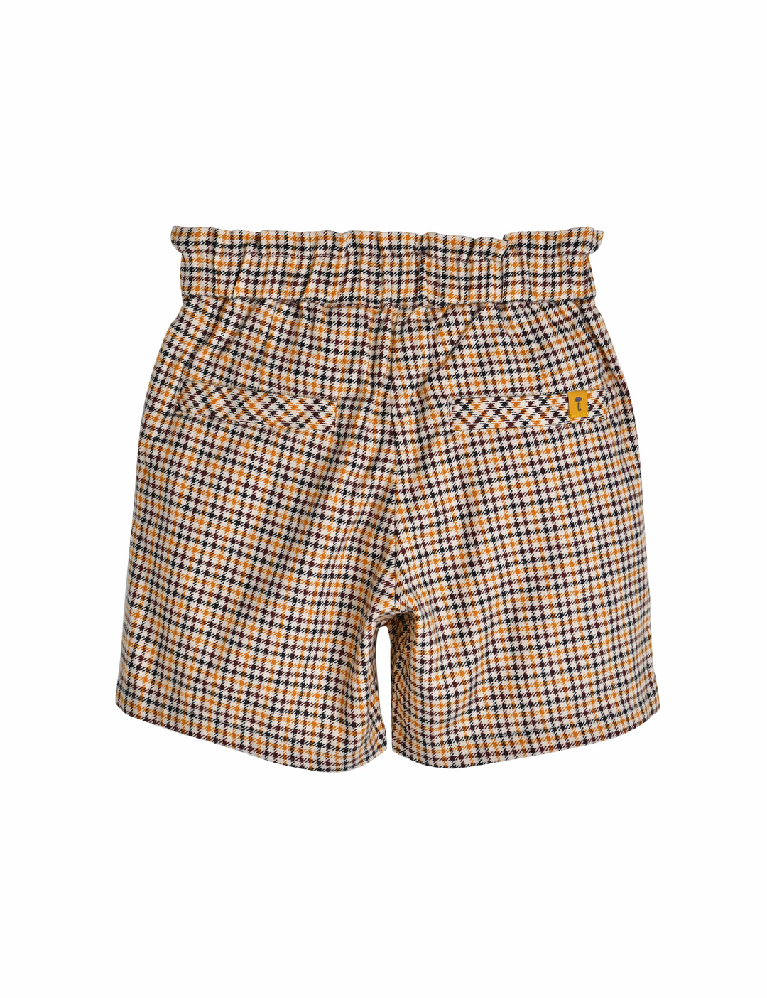 귀여운 체크 패턴의 5부 팬츠.