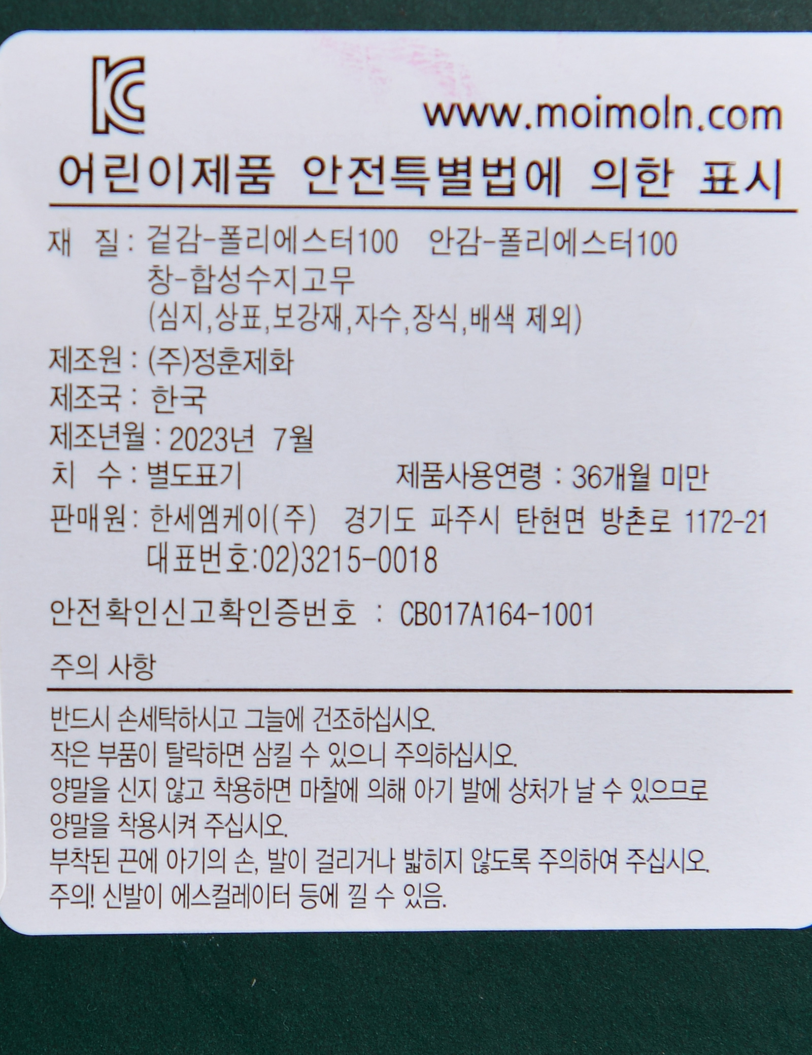 해당 인증정보는 판매자가 등록한 것으로 등록정보에 대한 일체의 책임은 판매자에게 있습니다.