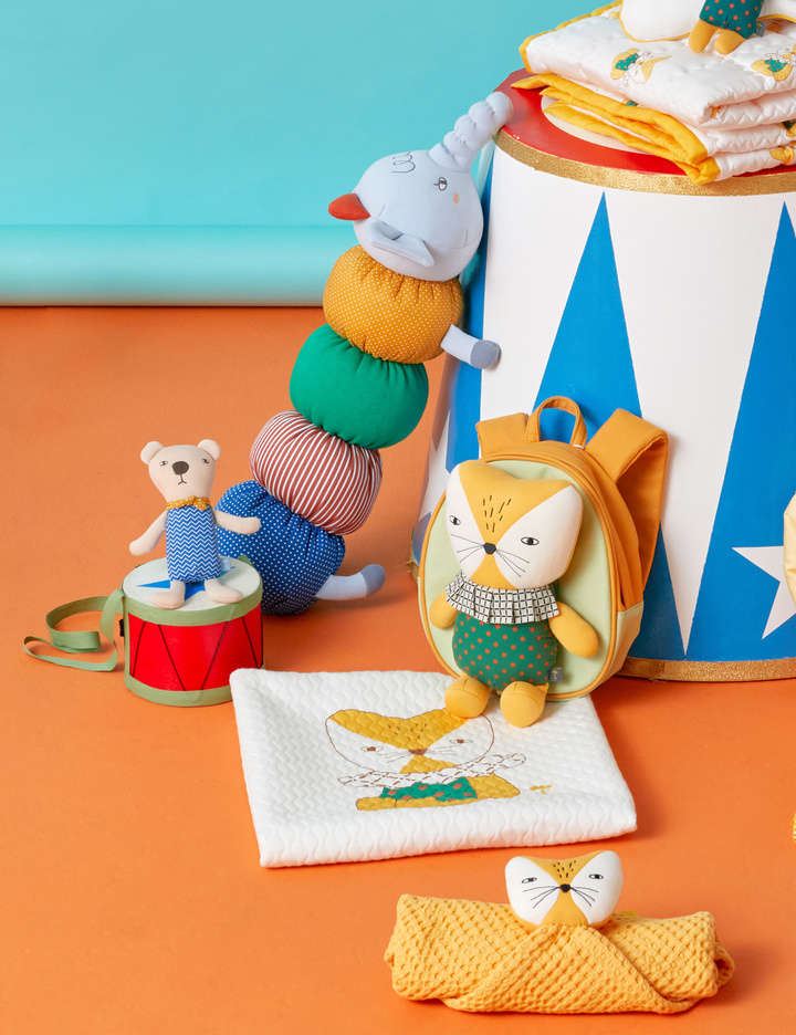 유니크한 컬러배색이 돋보이는 막대딸랑이.