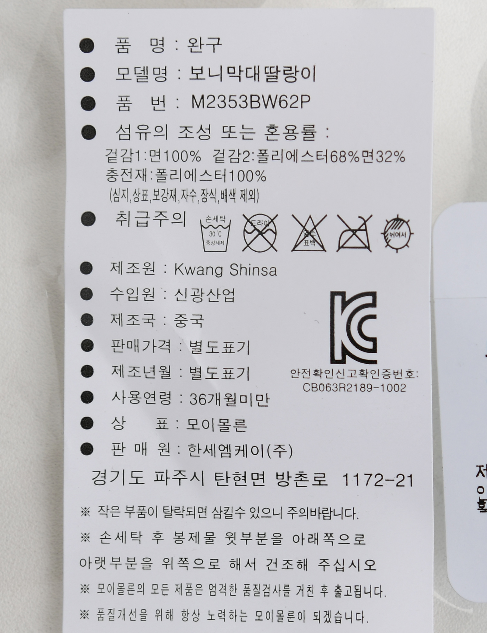 | 제조국 | 한세드림(주) |