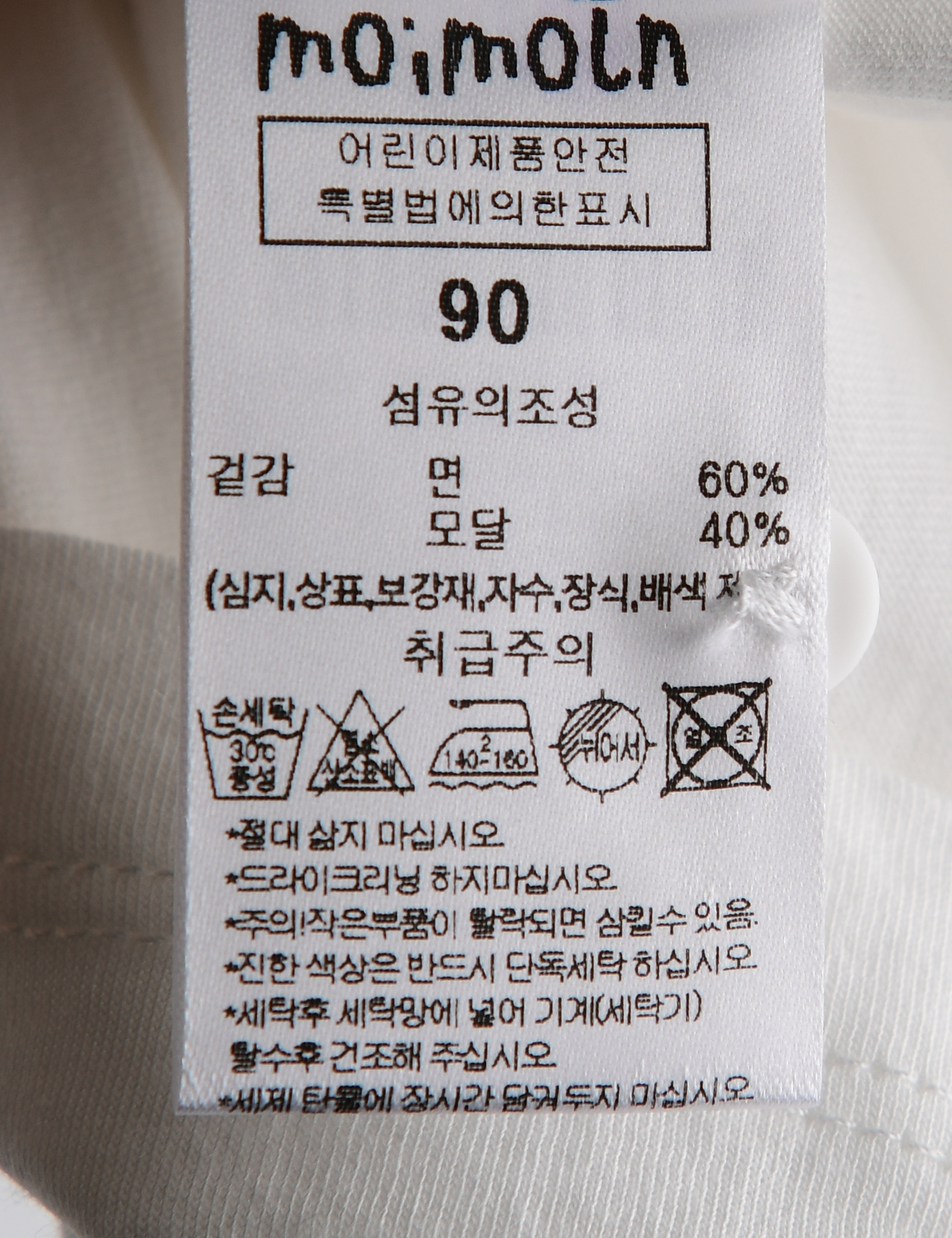 | 세탁방법 및 취급시 주의사항 | 본 세품은 손세탁 하십시오(케어라벨 참고) |