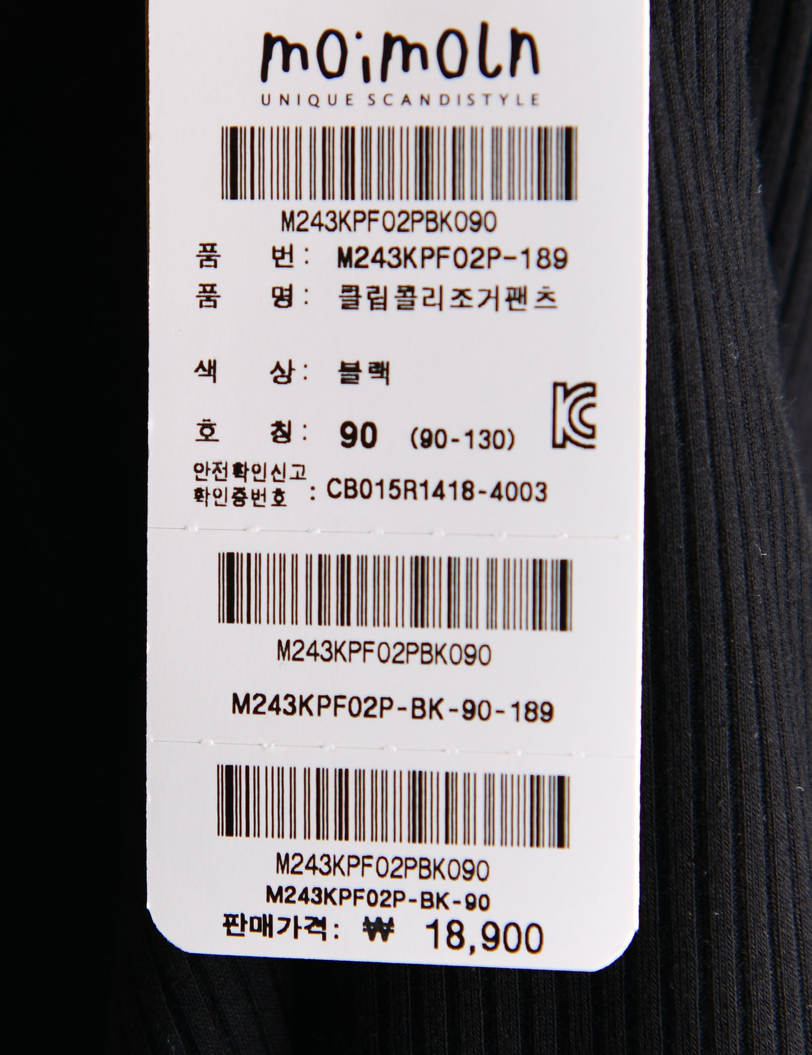 상품명 [모이몰른] 클립콜리조거팬츠