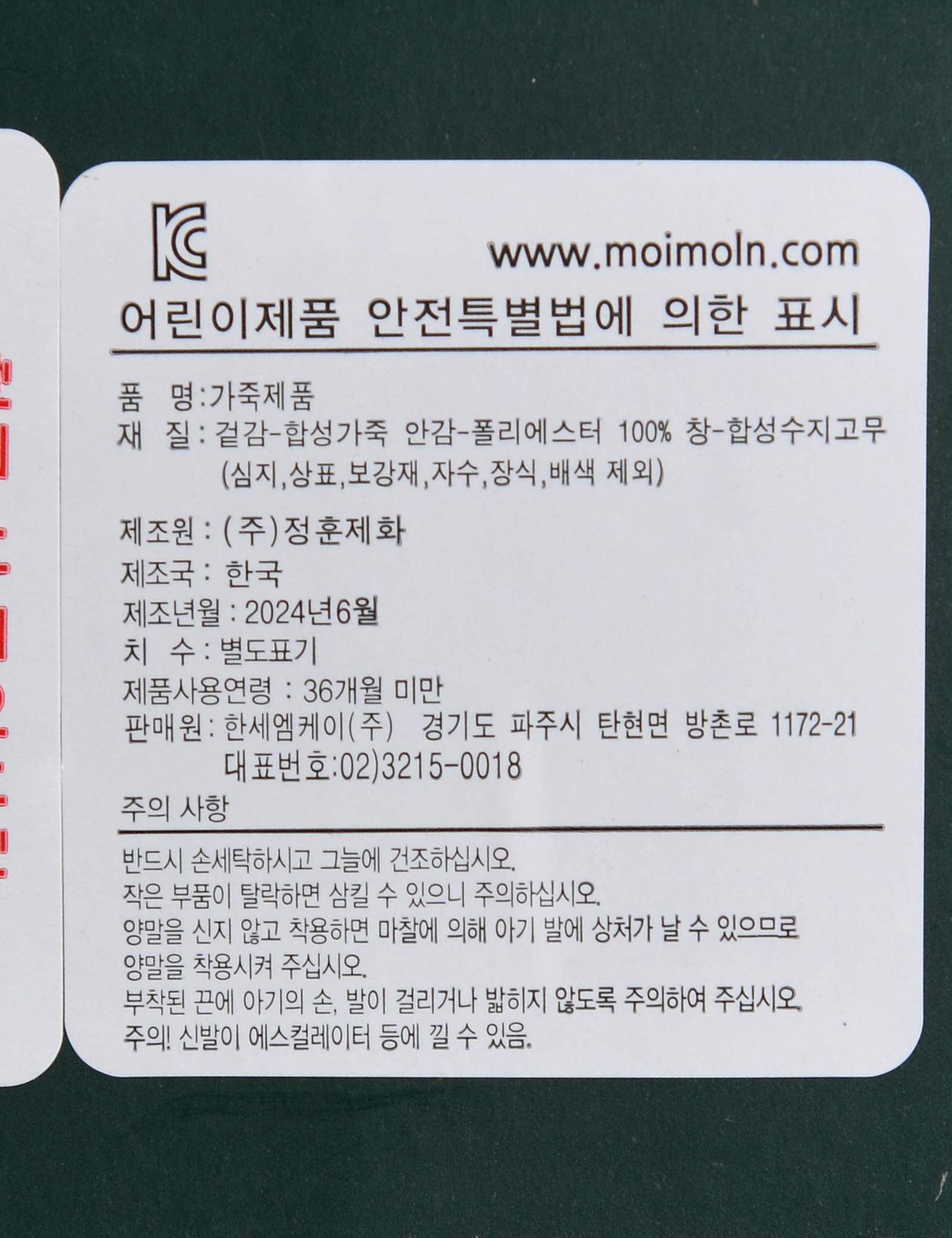 브랜드 홈 바로가기| 제품소재 | (겉감)합성가죽(안감)폴리에스터100%(창)합성수지고무 |