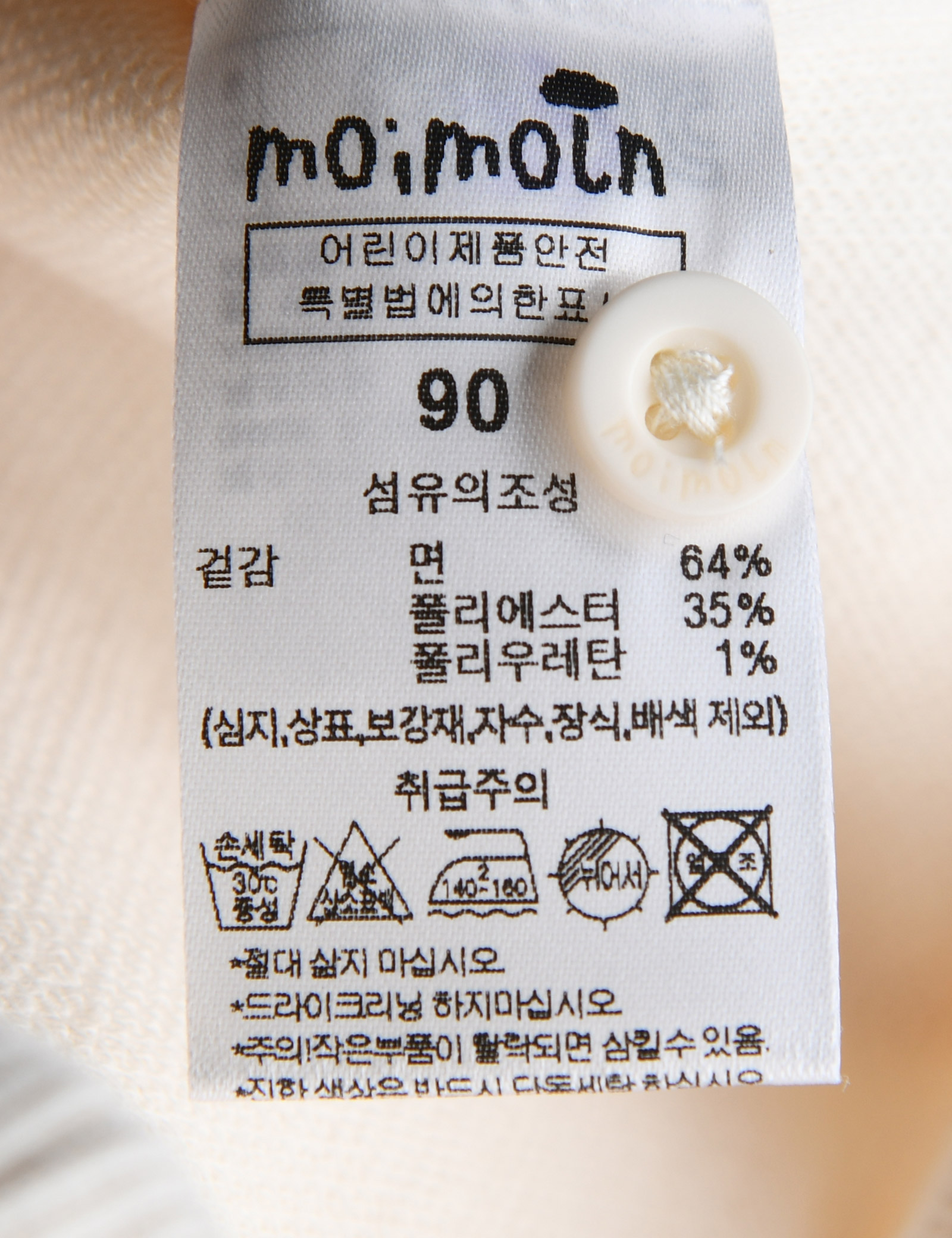| 세탁방법 및 취급시 주의사항 | 본 세품은 손세탁 하십시오(케어라벨 참고) |