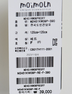| 세탁방법 및 취급시 주의사항 | 202311 |