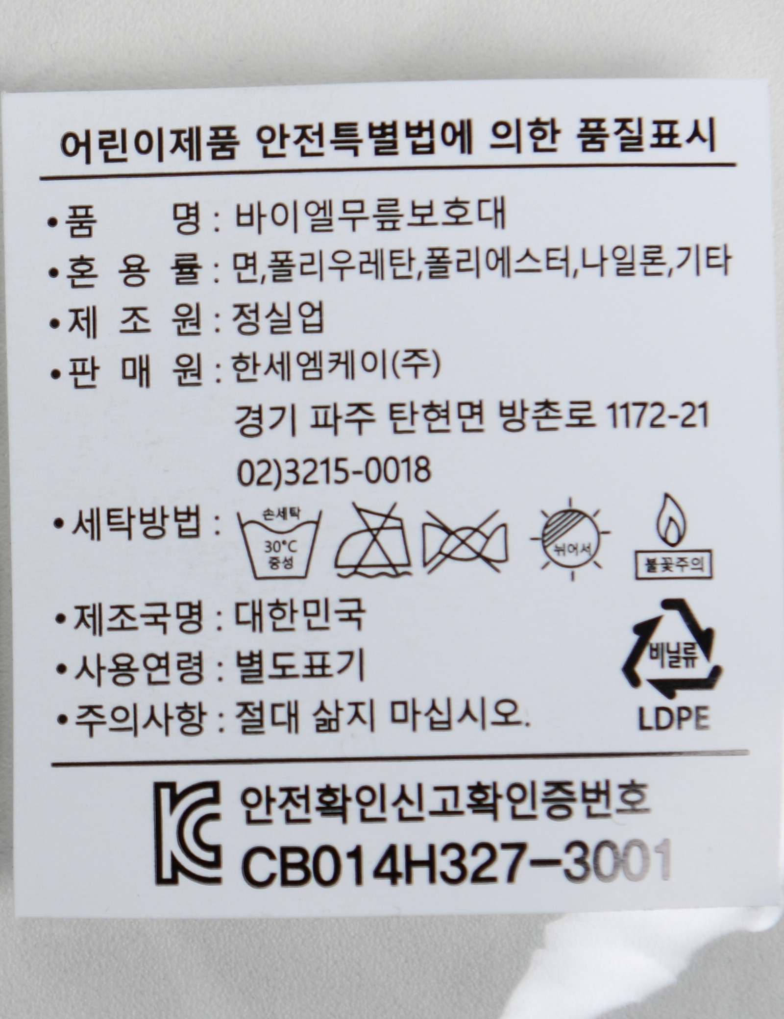 | 제조국 | 한세엠케이㈜ |