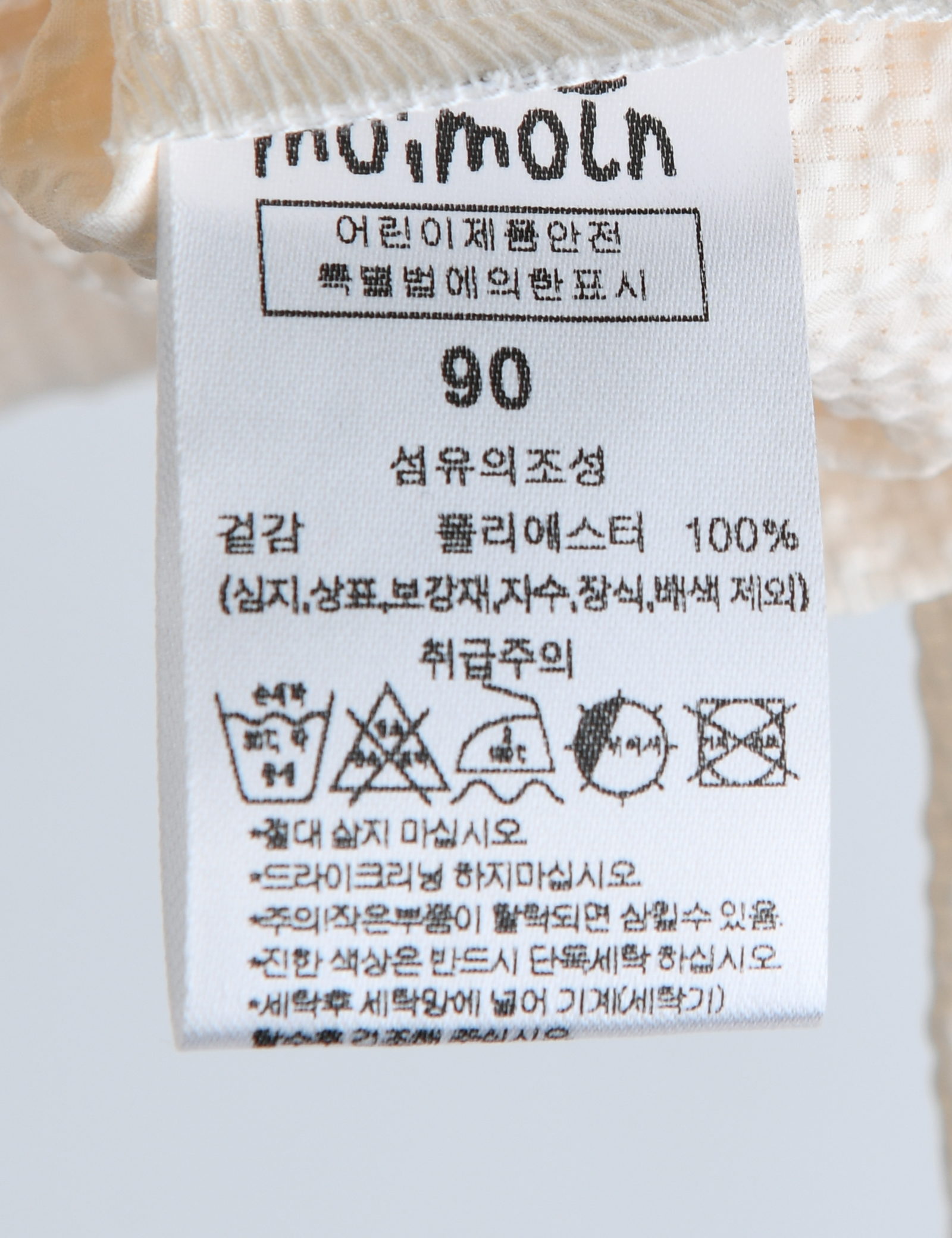 | 세탁방법 및 취급시 주의사항 | 본 세품은 손세탁 하십시오(케어라벨 참고) |
