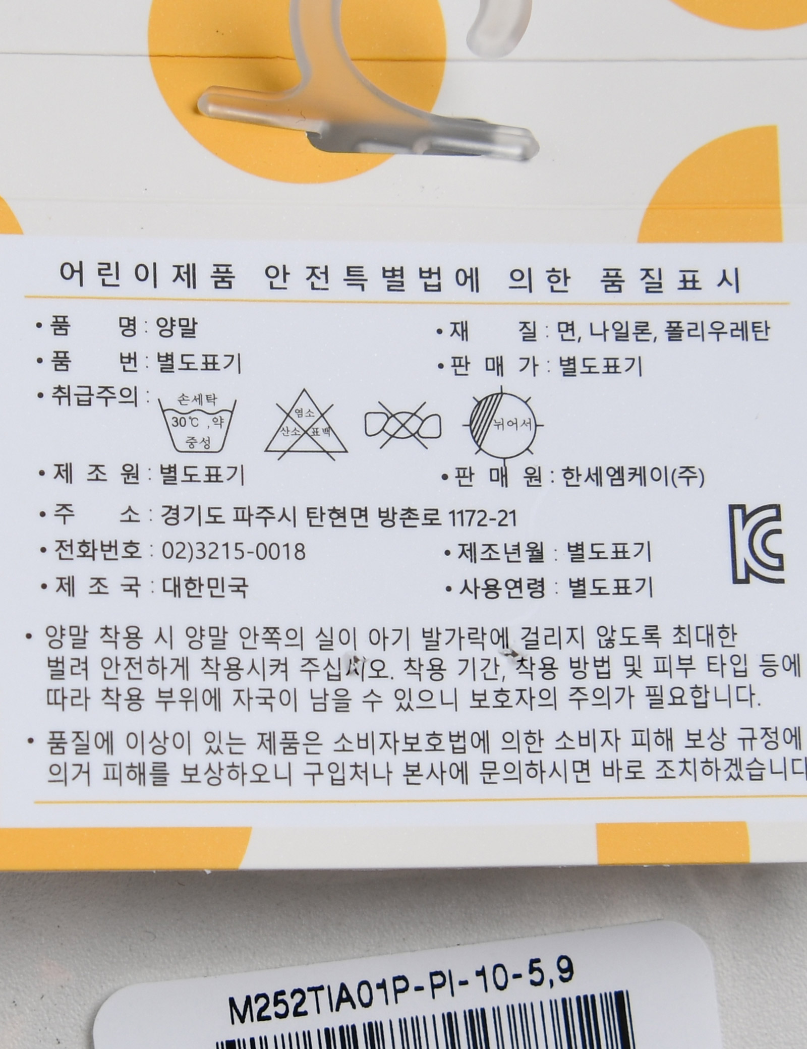 | 제조국 | 한세엠케이㈜ |