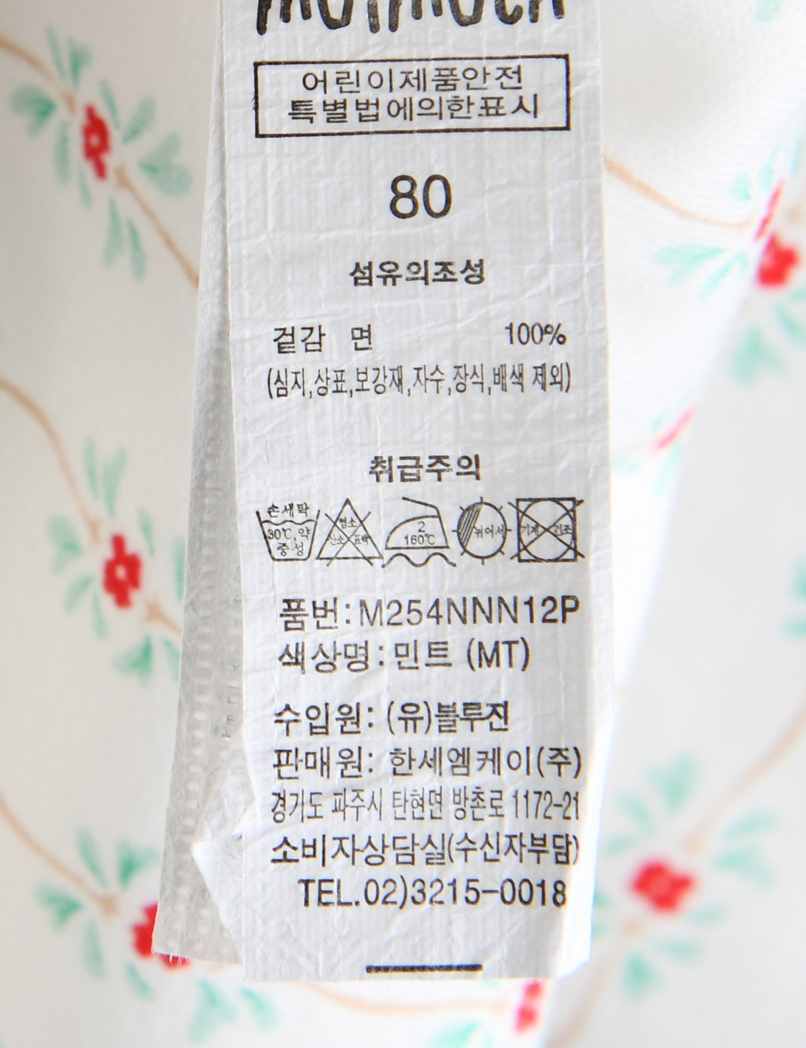 | 세탁방법 및 취급시 주의사항 | 본 세품은 손세탁 하십시오(케어라벨 참고) |