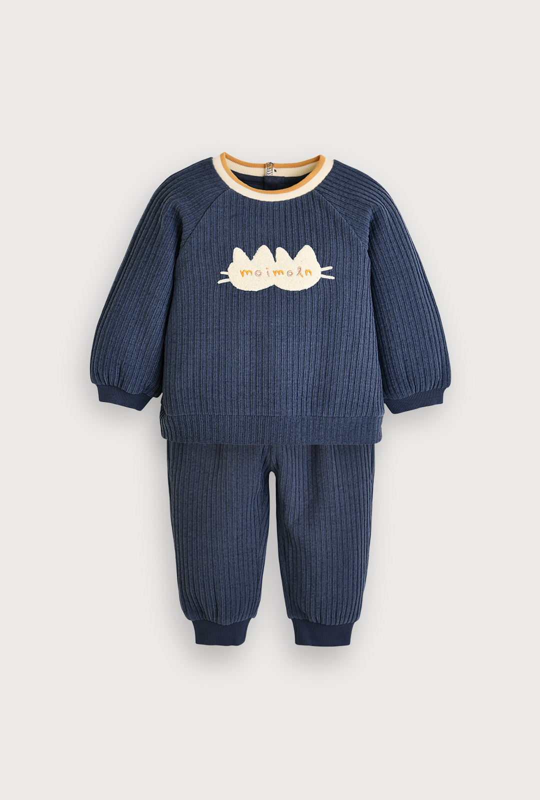 부드럽고 스판성이 좋은 골지 원단에귀여운 고양이 부클자수가 놓여져 있어데일리하게 활용하기 좋은 상하복으로,적당한 두께감의 원단이라겨울철 등원룩으로편하게 입히기에도 좋은 아이템.네크의 요꼬 립 컬러 배색이 화사하면서도캐주얼한 포인트가 되는 디자인의 아이템