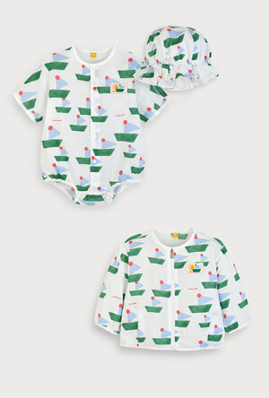 부드러운 밤부 소재와 귀여운 토끼·곰 나염으로 포근함을 더한 베이비 실내상하