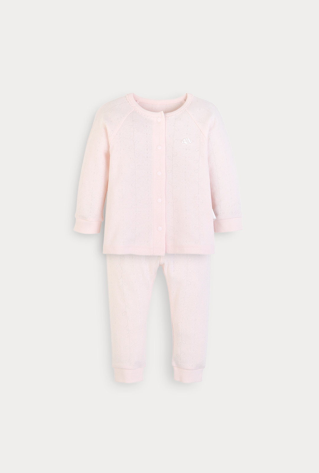 뉴본 신생아를 위한 은은한 리프 자카드 패턴의 미니모이 상하복