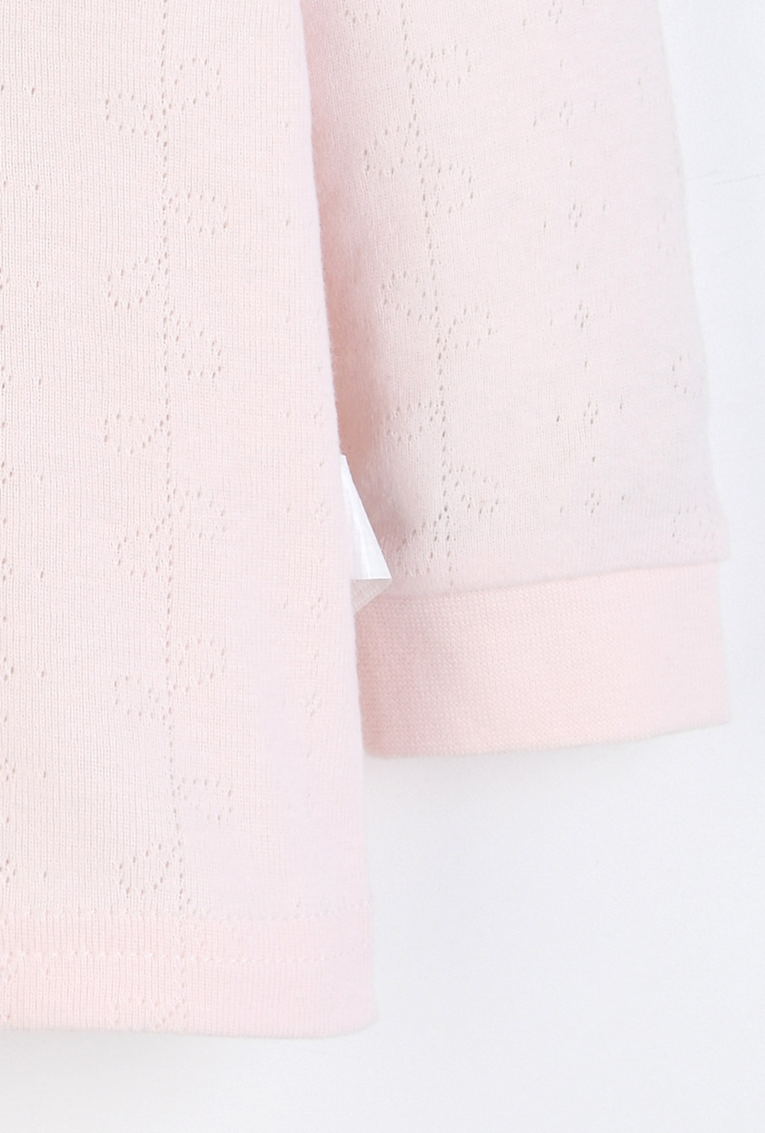 겉감 (30수 아일렛 자카드 면100): 피부에 닿는 느낌이 부드럽고 입체적인 자카드 패턴이 고급스러운 소재