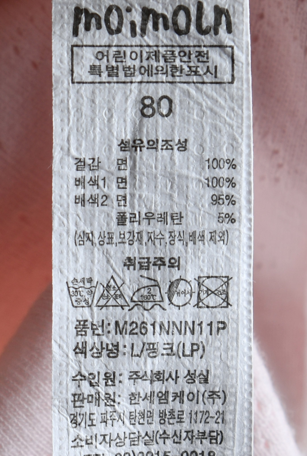 | 세탁방법 및 취급시 주의사항 | 본 세품은 손세탁 하십시오(케어라벨 참고) |
