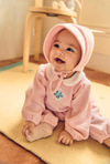 러블리한 컬러와 고급스러운 자카드 조직감에 보넷이 세트로 구성된 우주복 세트