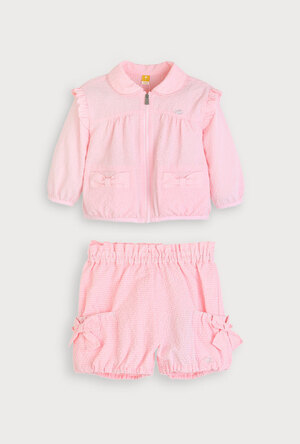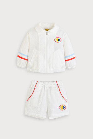 밝고 귀여운 컬러 조합과 고급스러운 니트 조직감의 자카드 상하복