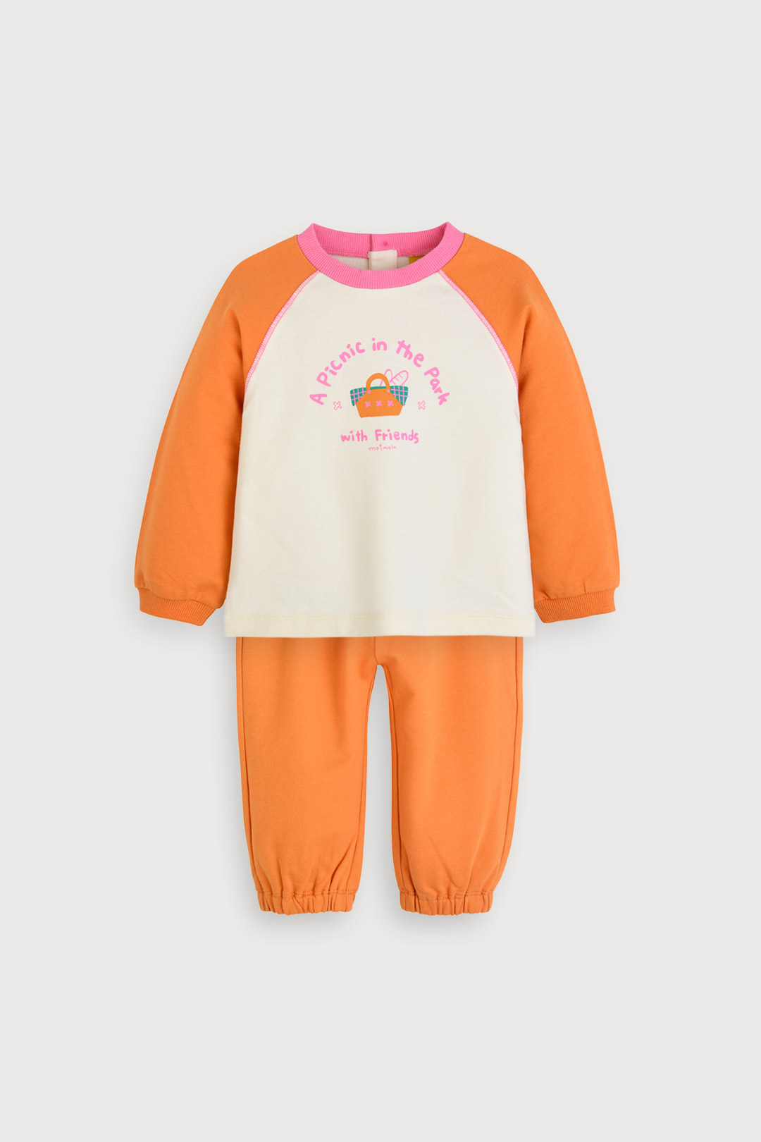 라글란 소매 배색과 유니크한 컬러감이 돋보이는 활동성 높은 상하복