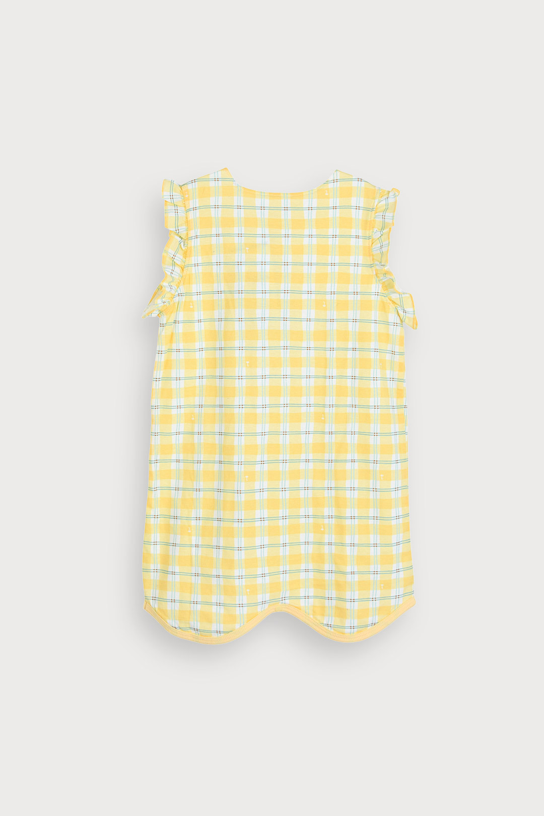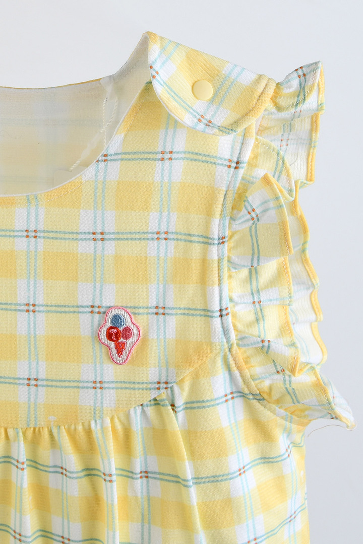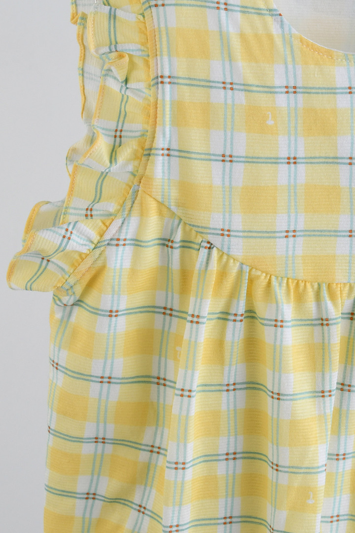 땀 흡수와 건조가 빠른 기능성 쿨에버 소재에 체크 전판 나염과 프릴이 귀여운 수면조끼