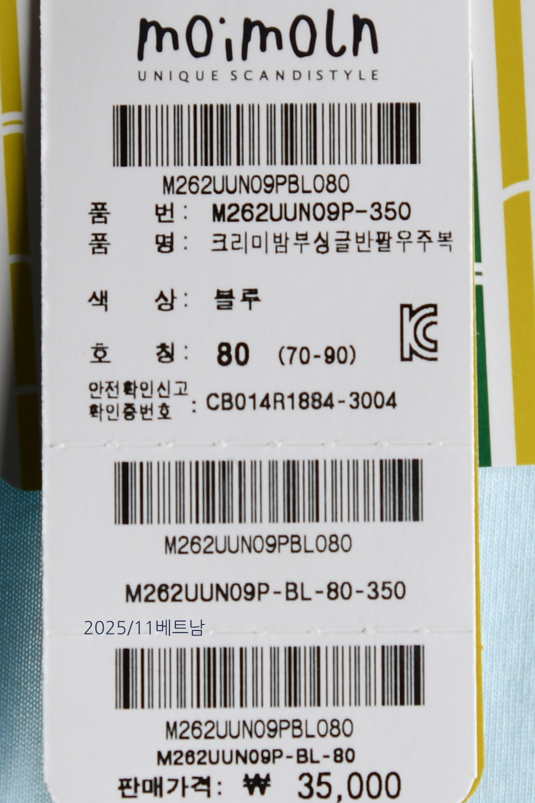 | 상품명 | [모이몰른] 크리미밤부싱글반팔우주복 [여름] |