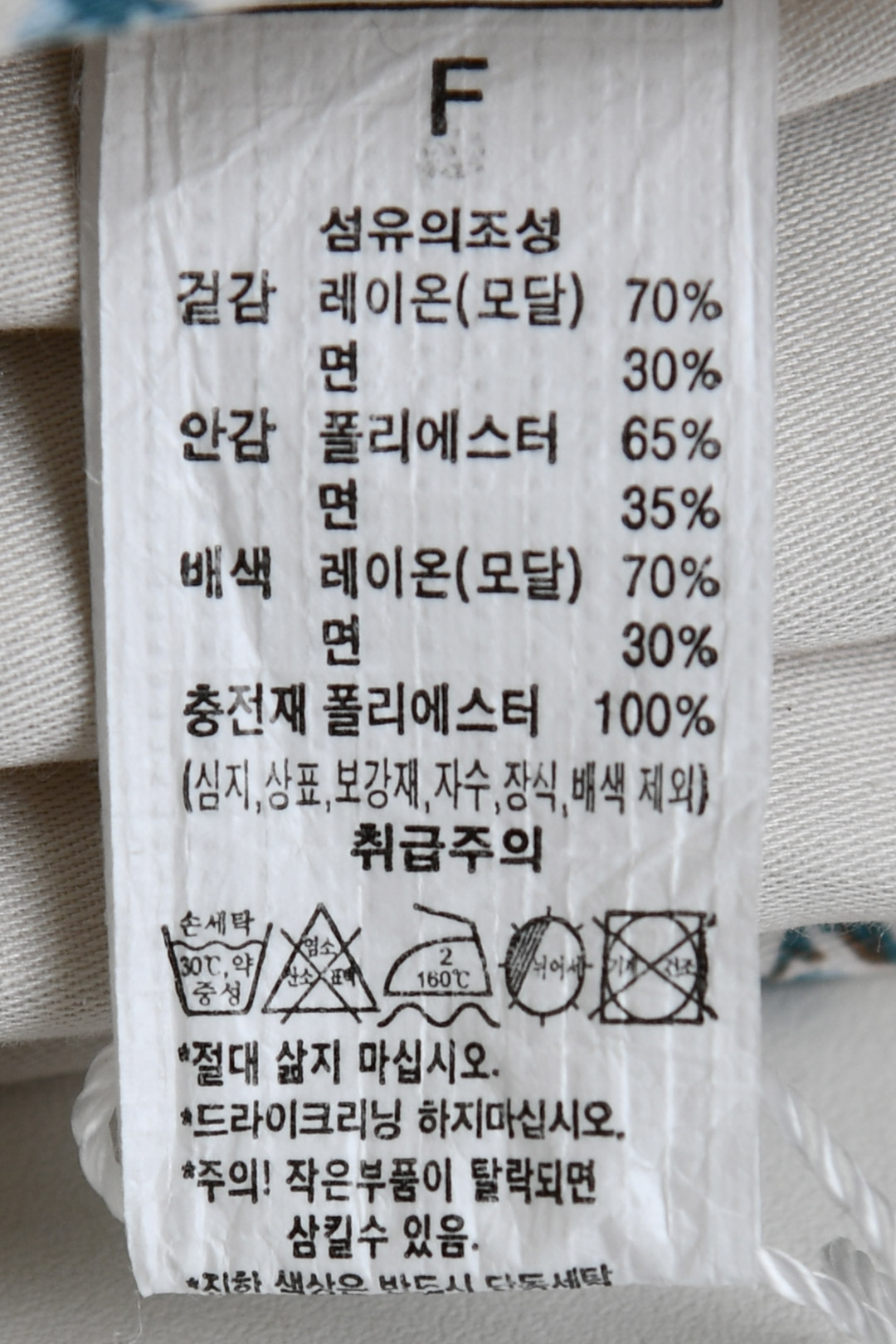 *레이온 세탁시 형태 변형 주의 / 건조기 사용 금지
