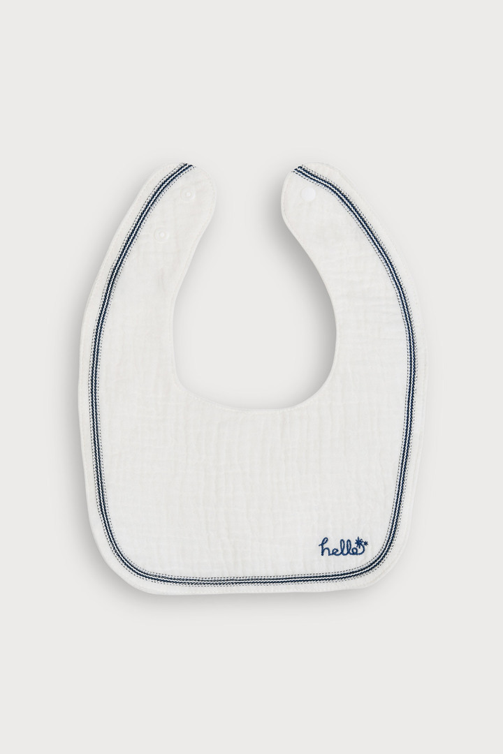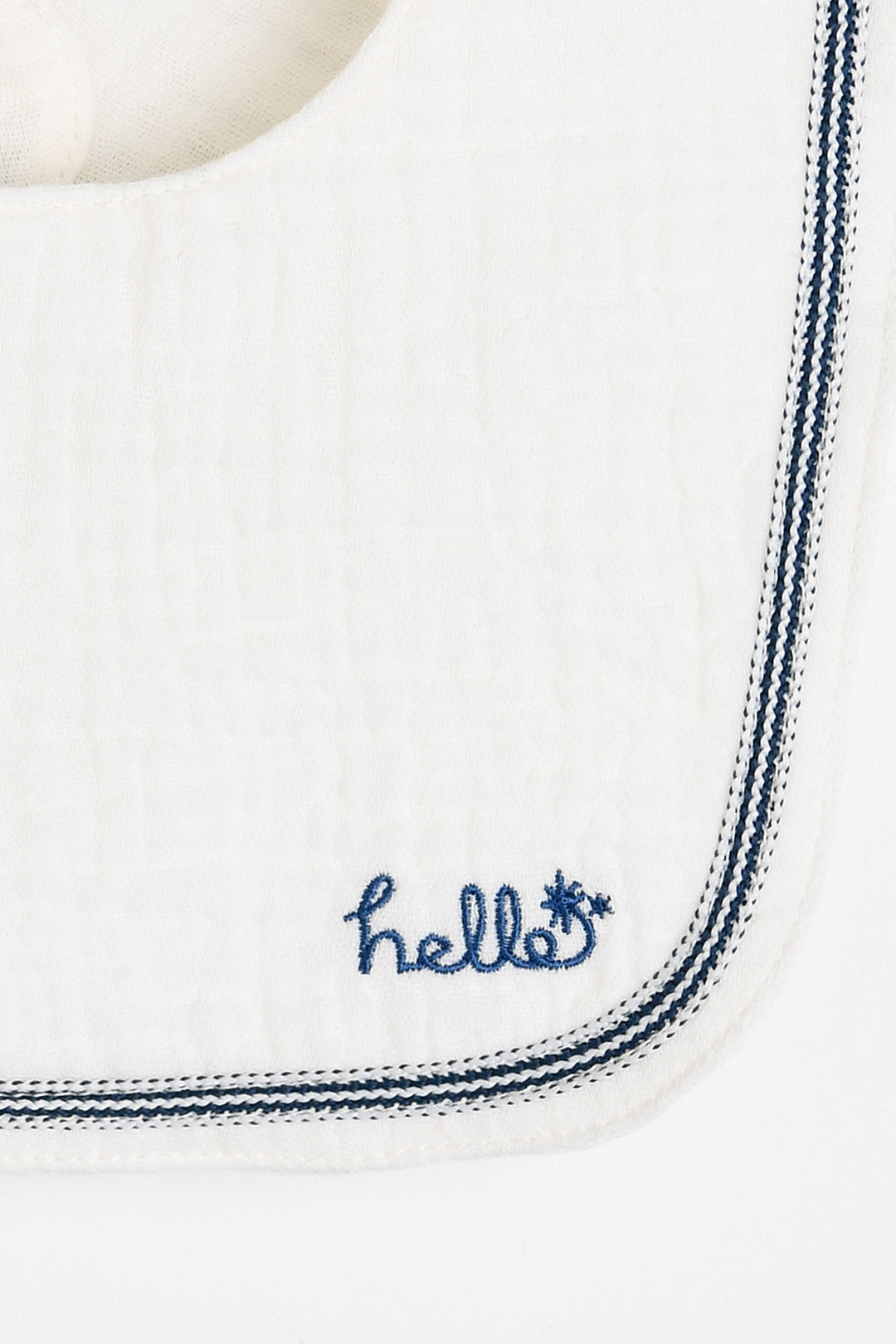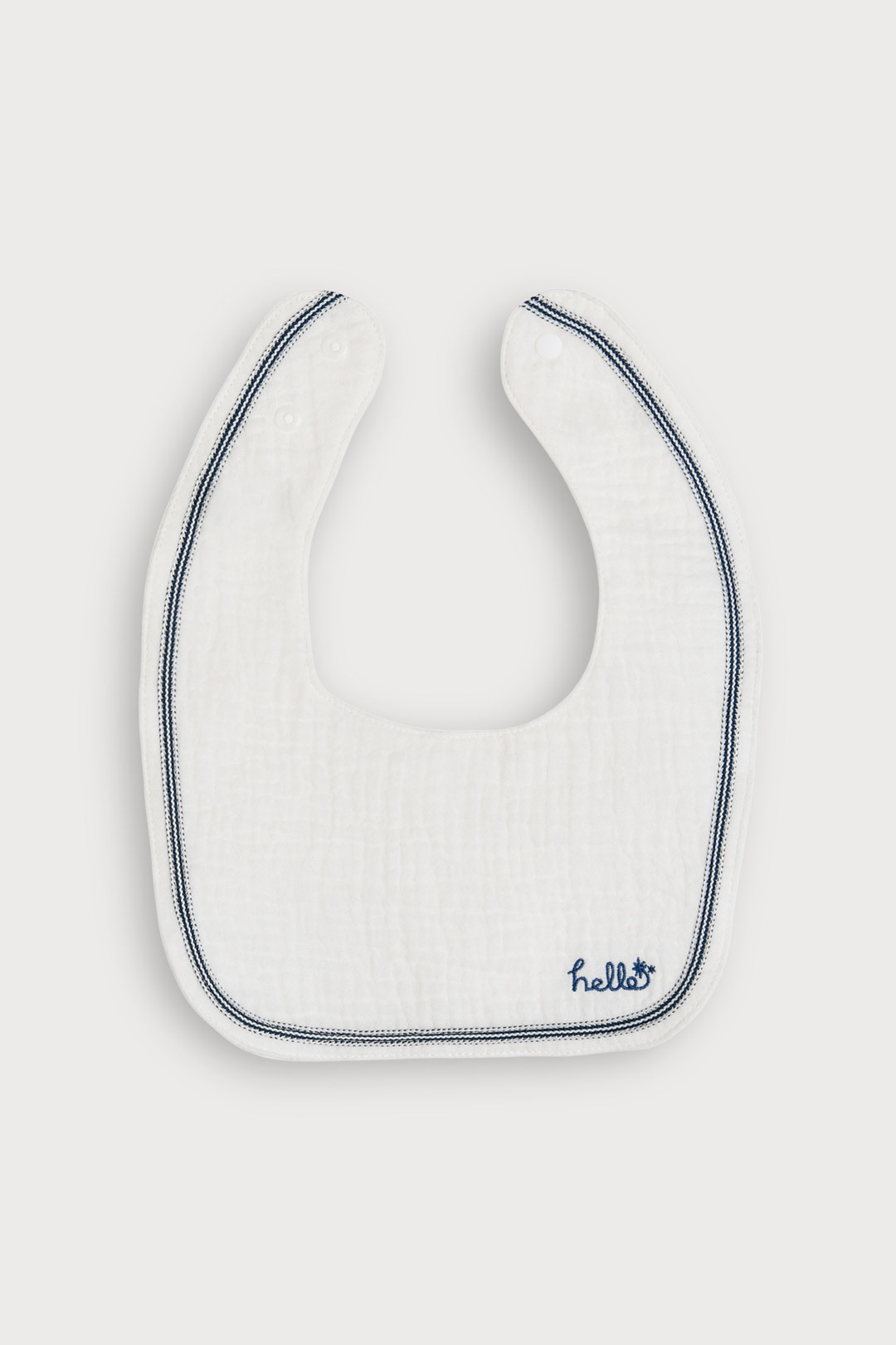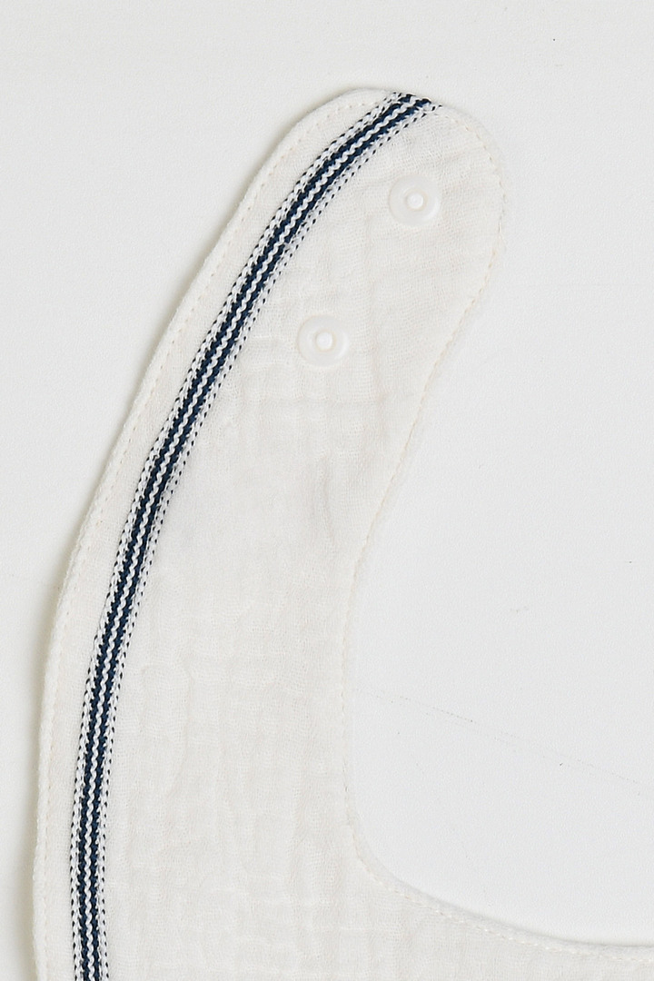 부드럽고 통기성 좋은 이중 요루 소재에 자수와 직조 테잎 포인트를 더한 양면 턱받이