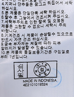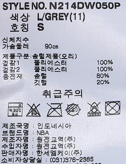 | 세탁방법 및 취급시 주의사항 | 중성세제로 단 시간내에 세탁하십시오.(케어라벨참고) |