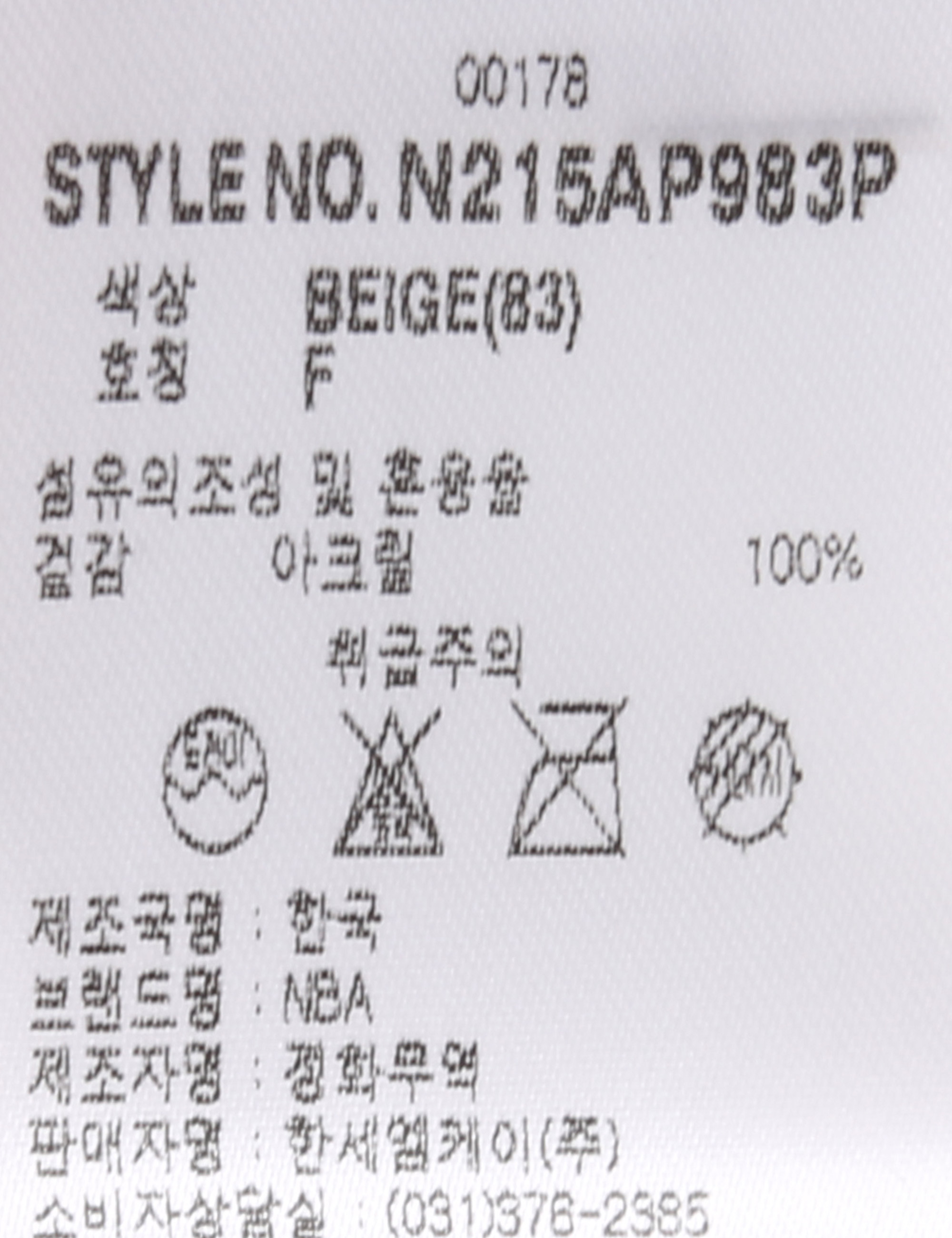 | 취급시 주의사항 | 본 제품은 반드시 드라이크리닝 하십시오.(세탁라벨참고) |