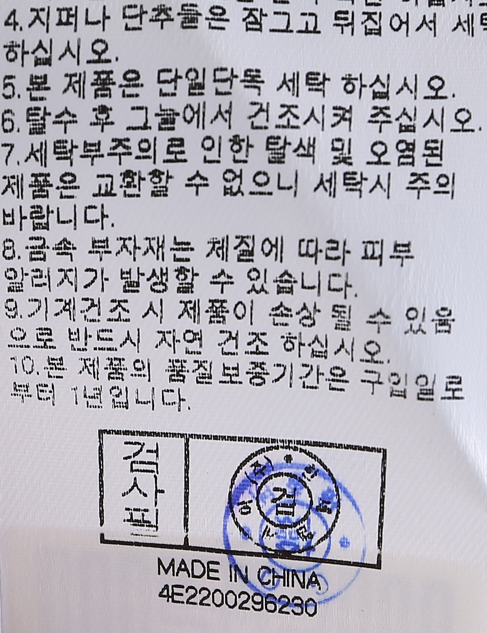 | 세탁방법 및 취급시 주의사항 | 중성세제로 단 시간내에 세탁하십시오.(케어라벨참고) |