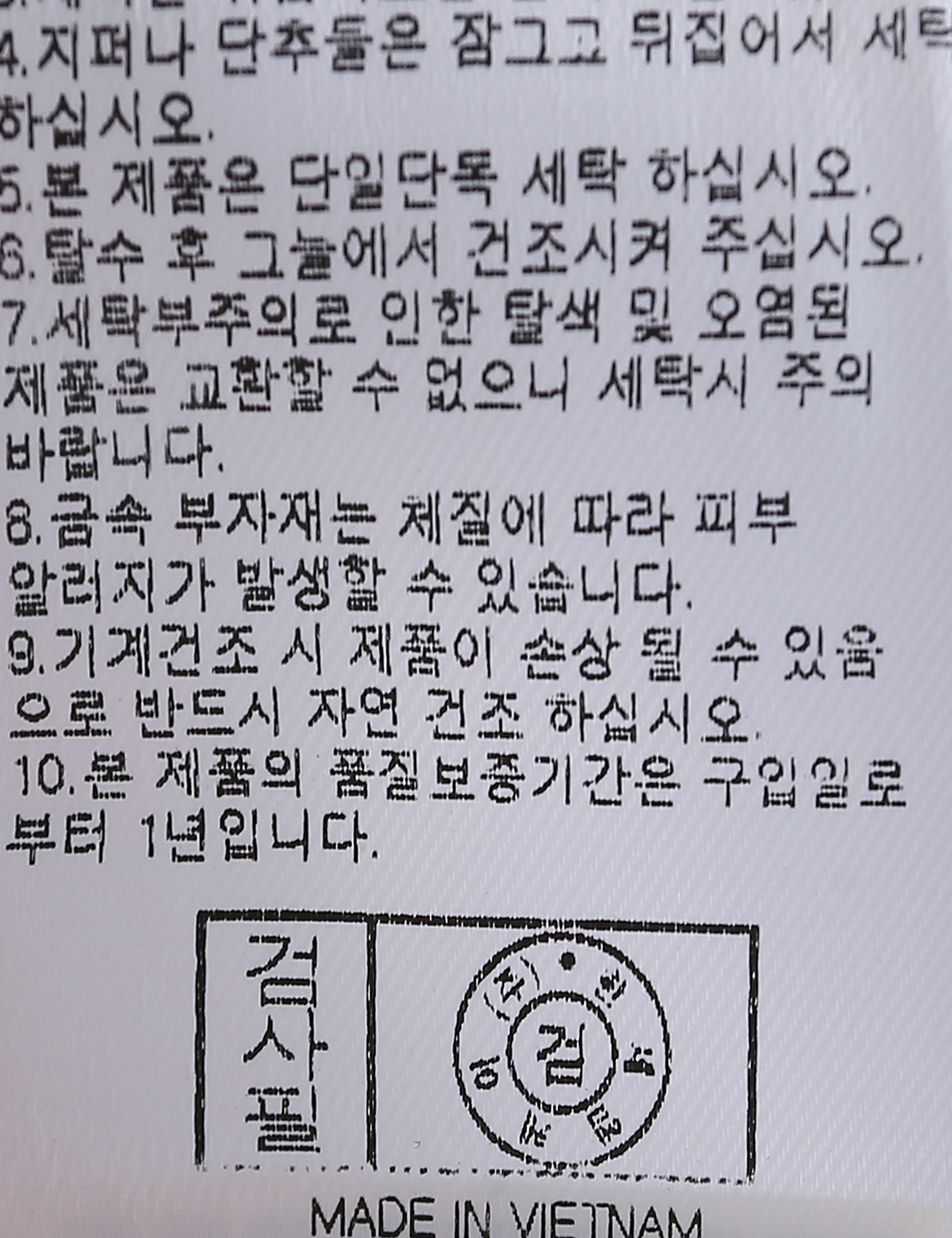 | 세탁방법 및 취급시 주의사항 | 본 제품은 손세탁 하십시오.(케어라벨참고) |