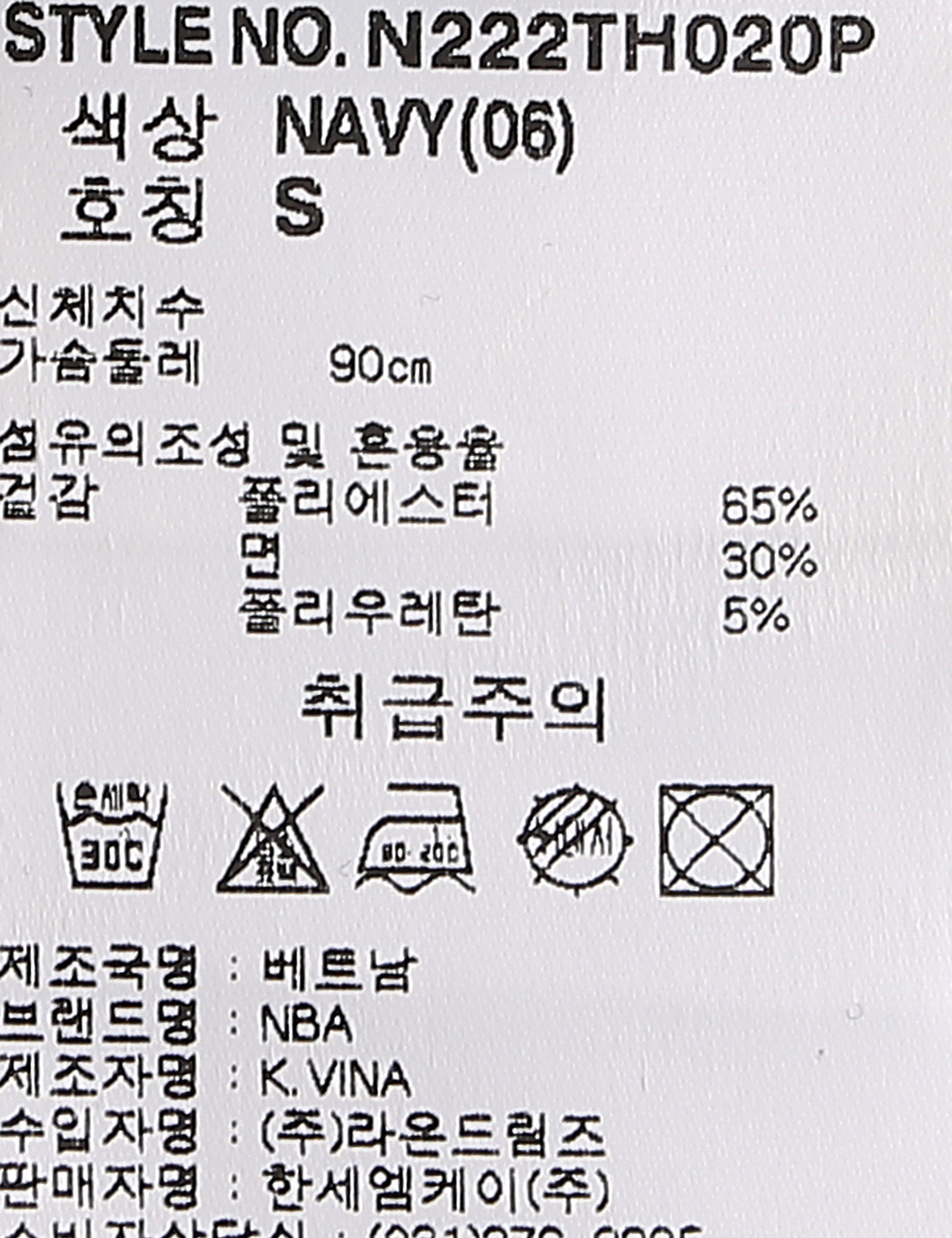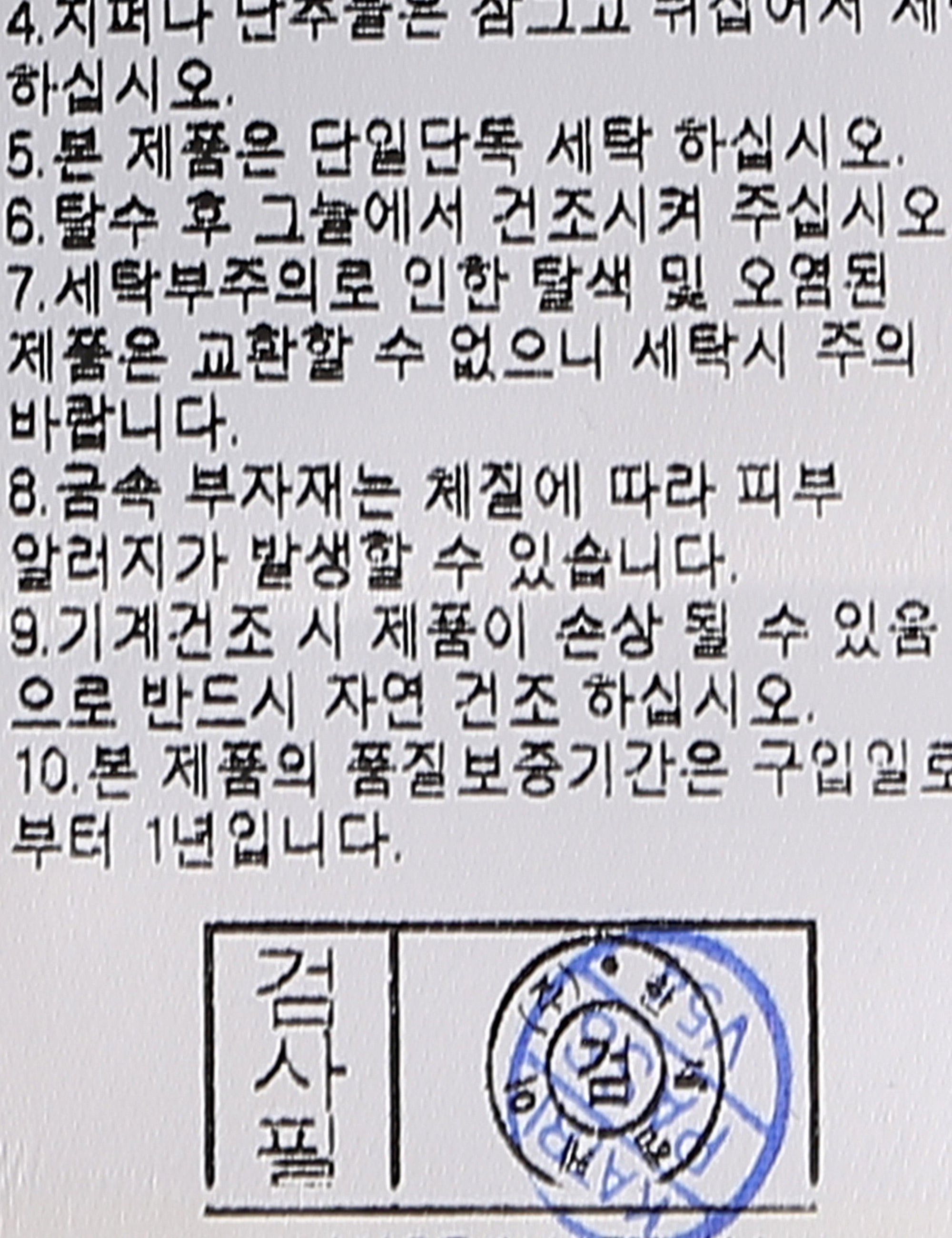 | 세탁방법 및 취급시 주의사항 | 기계세탁 |