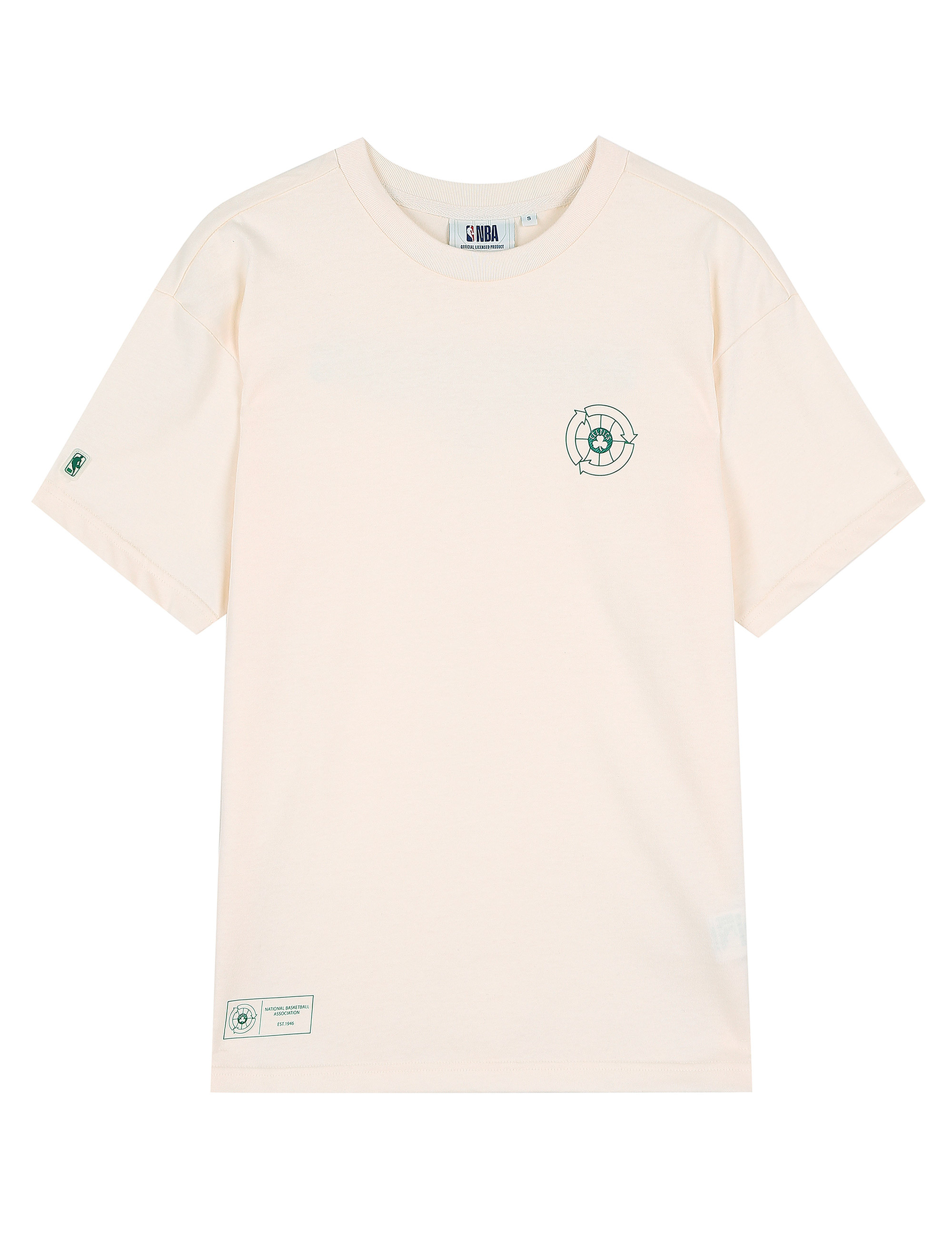 패션업계에서 트랜드인 환경이슈를 BOSTON CELTICS팀과 연관지어 디자인으로 풀어낸 NBA GREEN 시리즈의 반팔 티셔츠루즈 핏(LOOSE FIT)