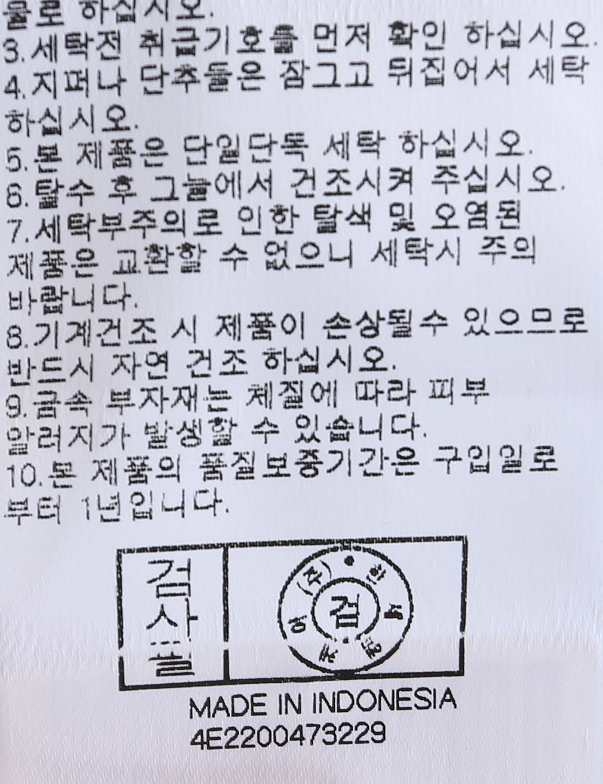| 세탁방법 및 취급시 주의사항 | 중성세제로 단 시간내에 세탁하십시오.(케어라벨참고) |