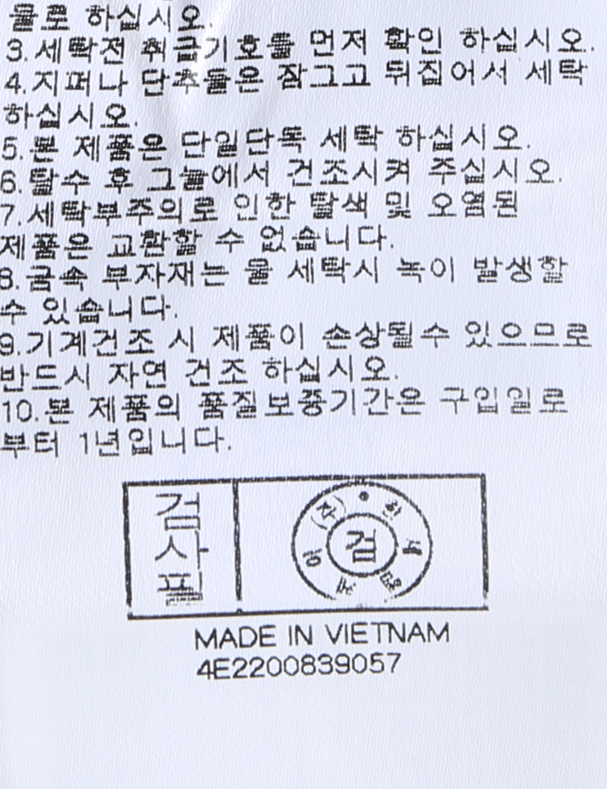 | 세탁방법 및 취급시 주의사항 | 본 제품은 손세탁 하십시오.(케어라벨참고) |