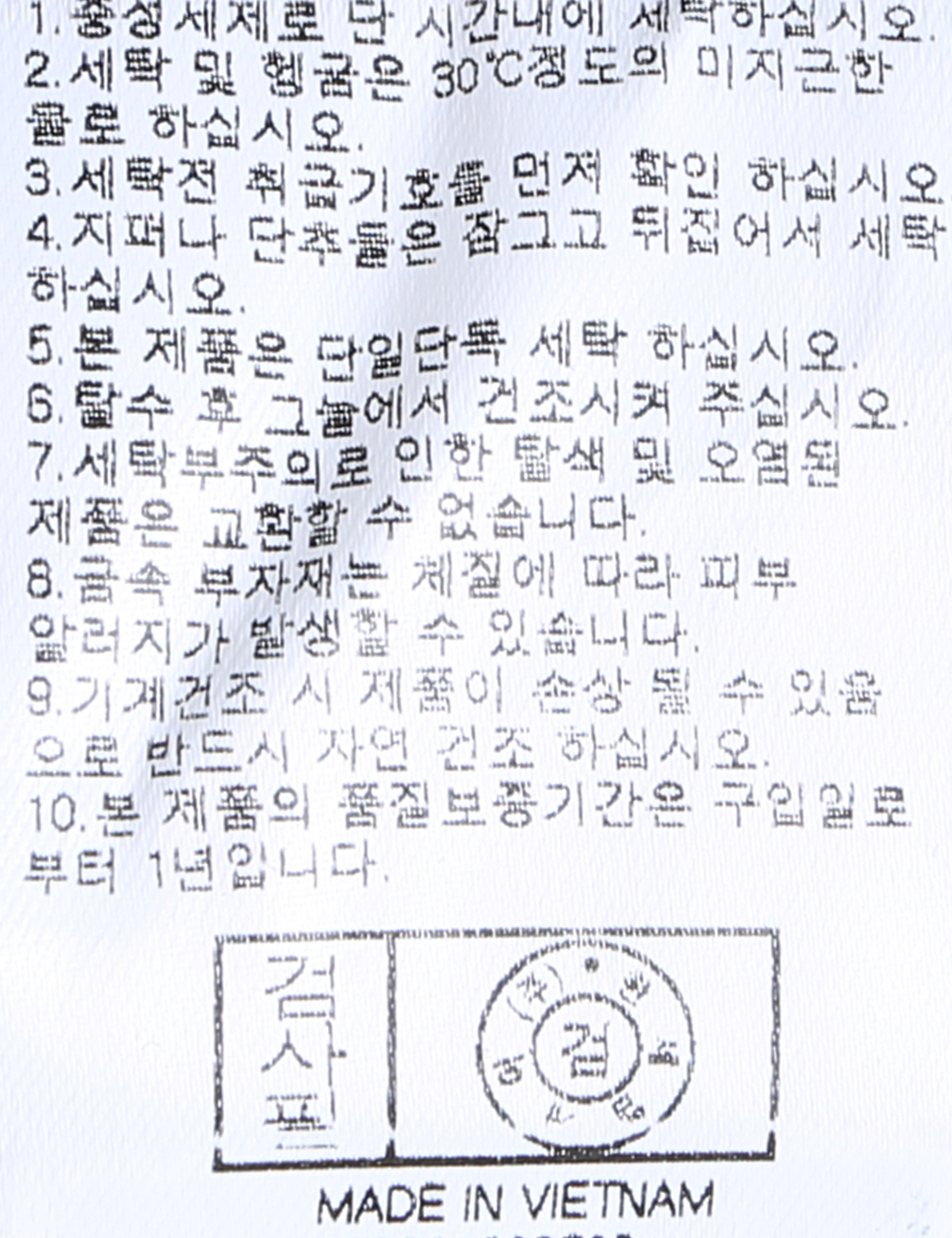 | 세탁방법 및 취급시 주의사항 | 본 제품은 손세탁 하십시오.(케어라벨참고) |