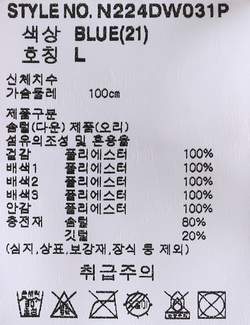 브랜드 홈 바로가기| 제품소재 | [겉감]폴리에스터100% [배색]폴리에스터100% [안감]폴리에스터100% [충전재]오리솜털80% 오리깃털20% |