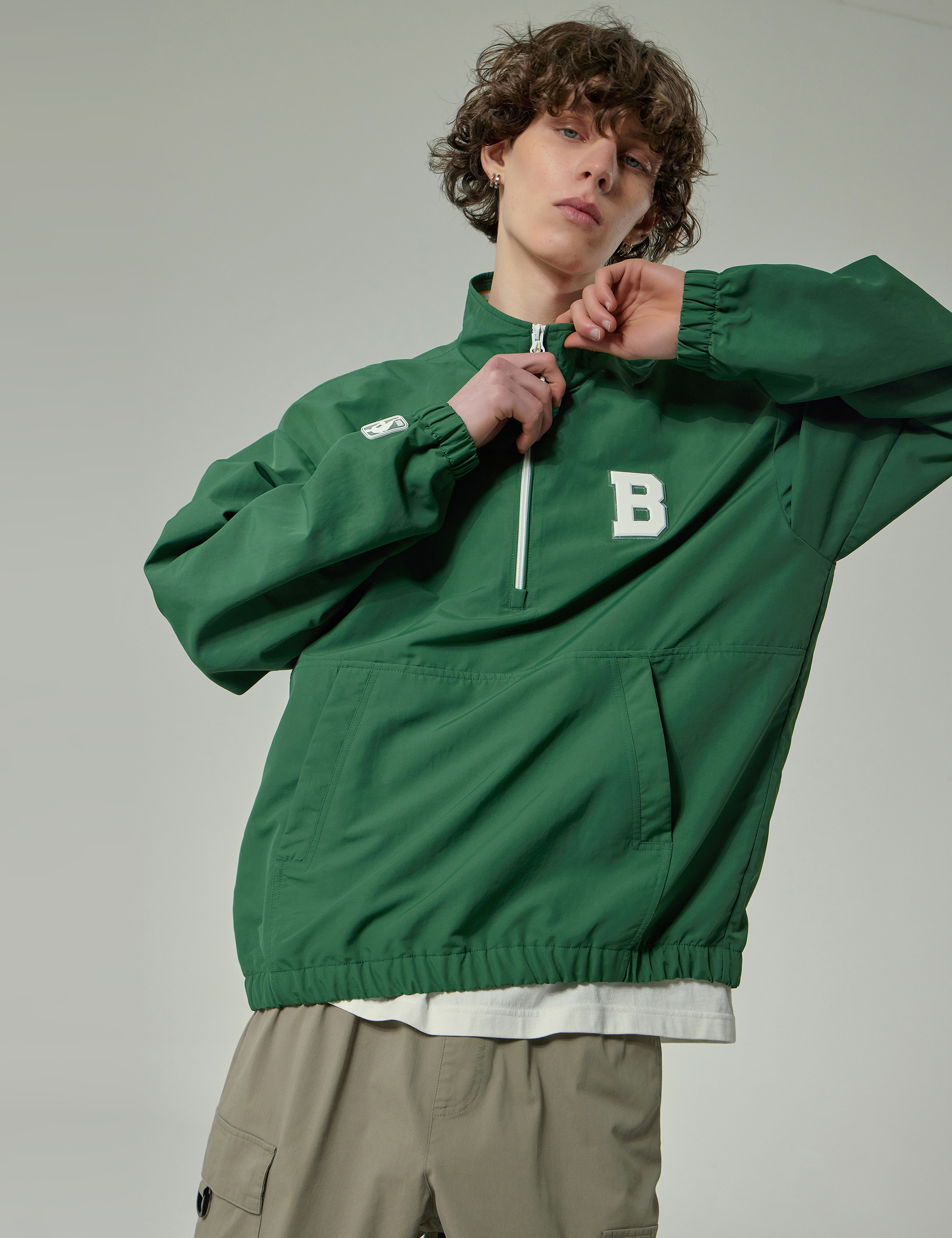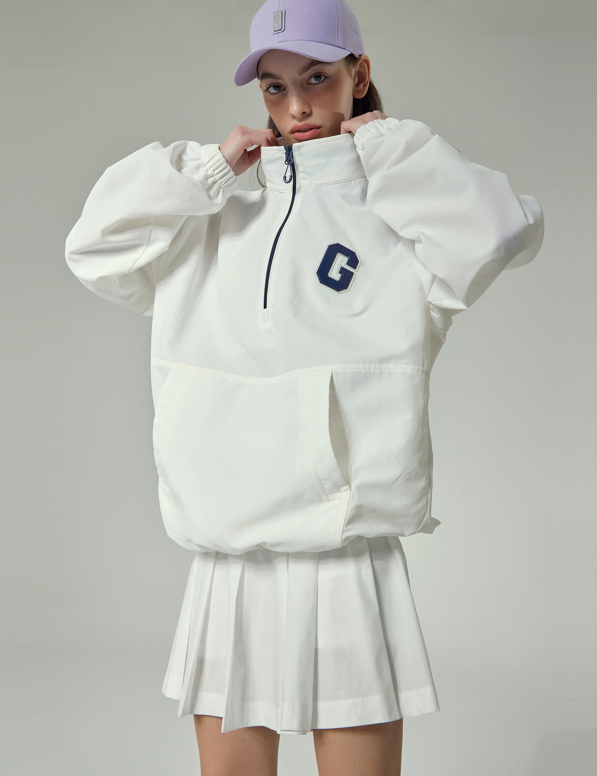 아노락 스타일로 하프 지퍼 여밈과, 신축성있는 소매단 디테일로 편안한 활동성을 제공함