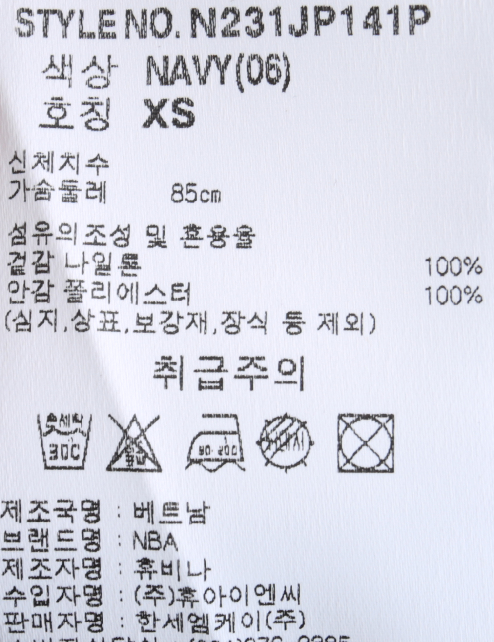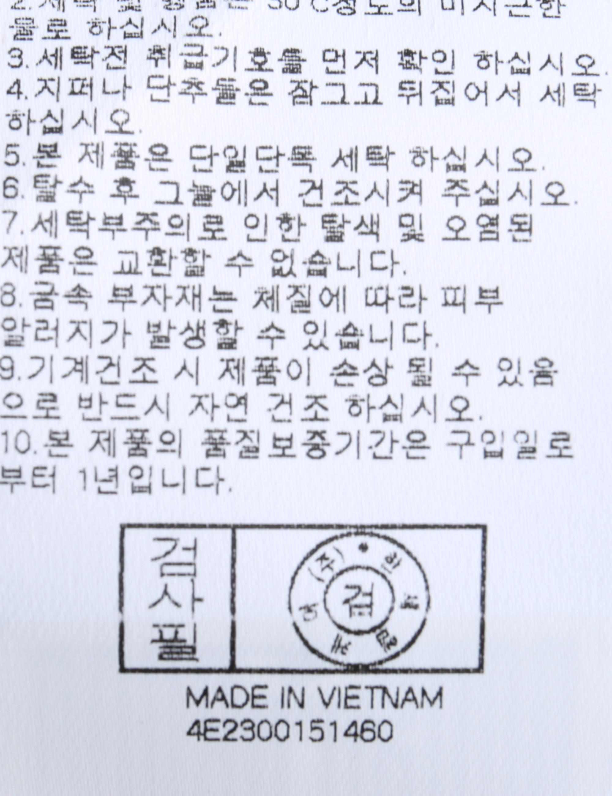 | 세탁방법 및 취급시 주의사항 | 중성세제로 단 시간내에 세탁하십시오.(케어라벨참고) |