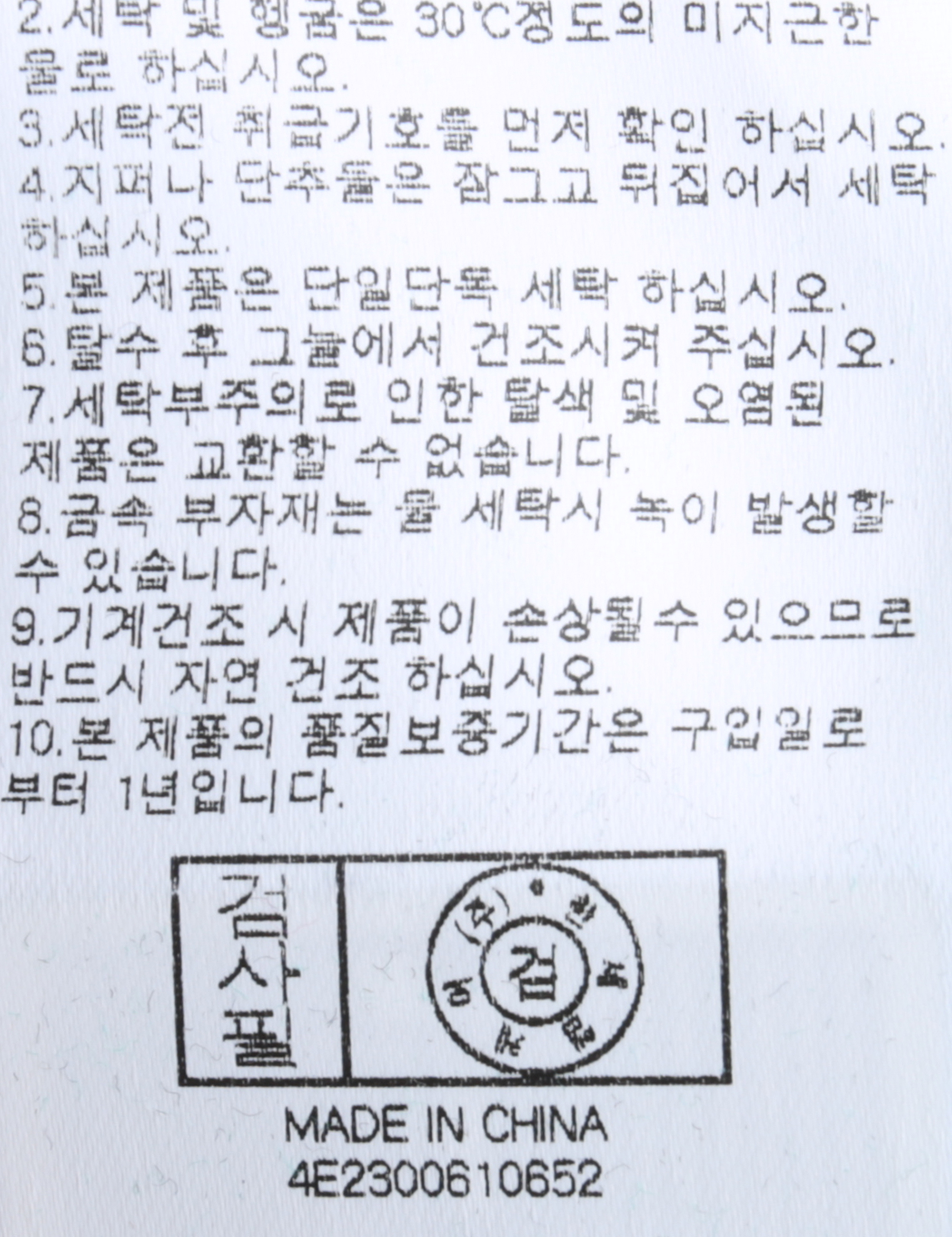 | 세탁방법 및 취급시 주의사항 | 본 제품은 손세탁 하십시오.(케어라벨참고) |
