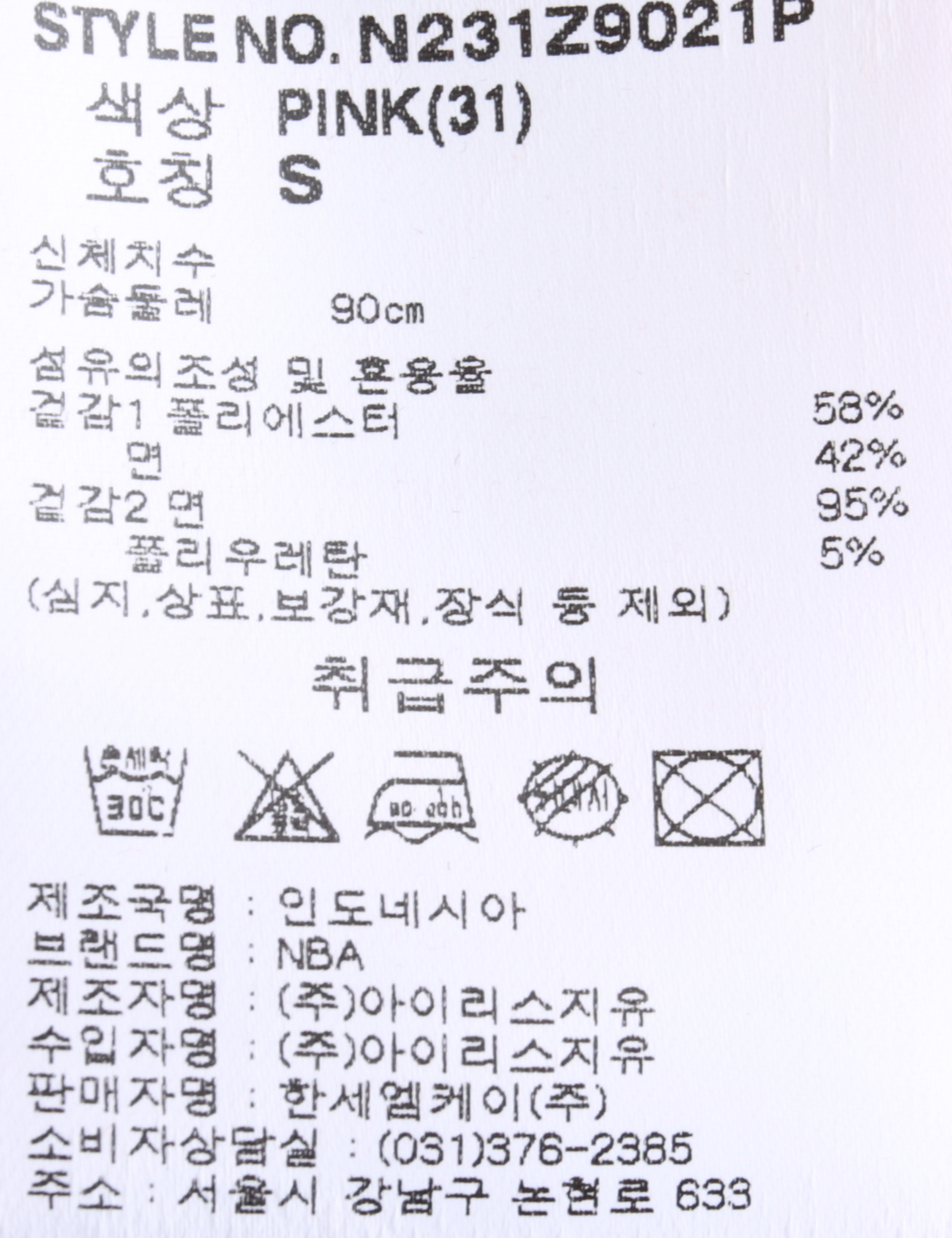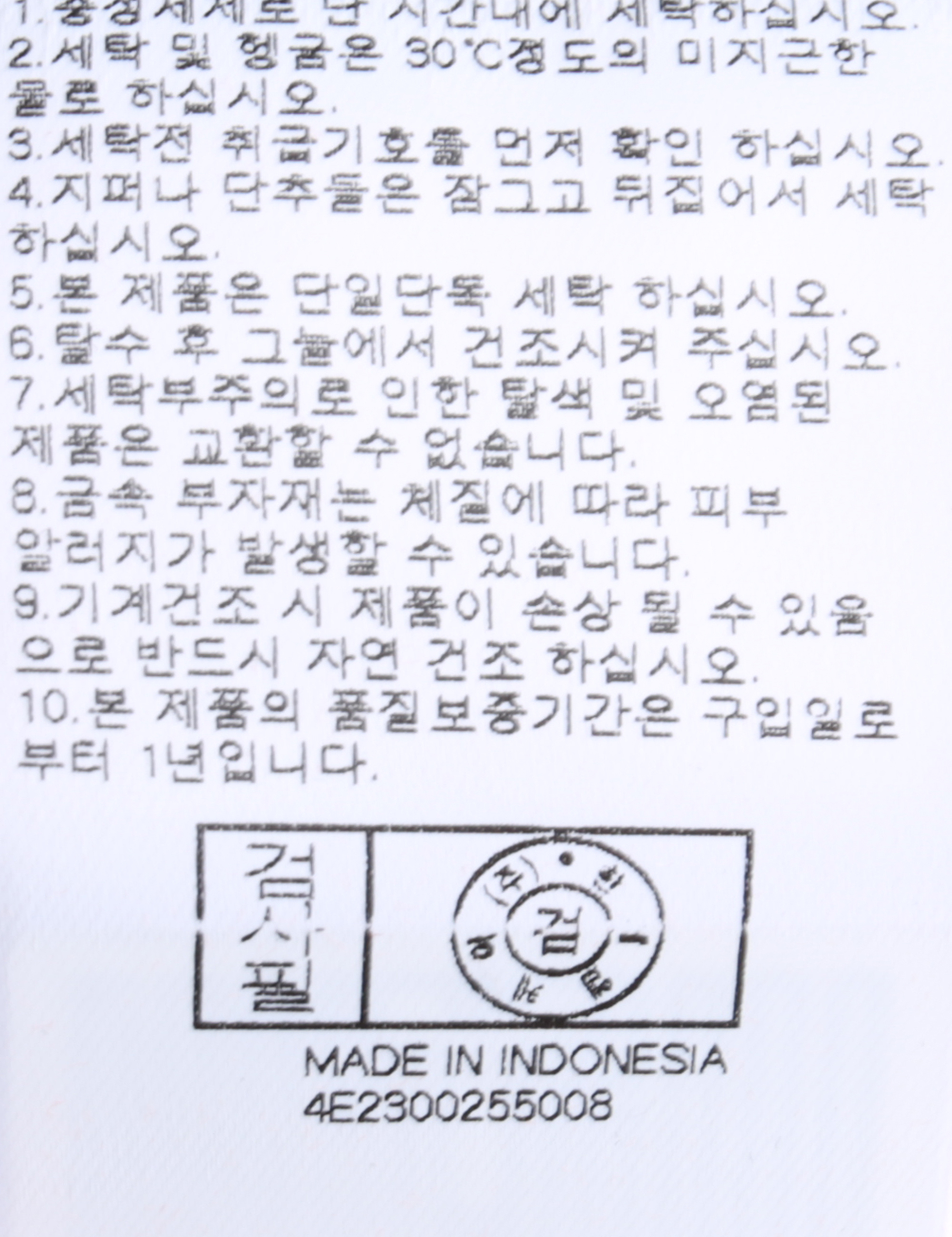 | 세탁방법 및 취급시 주의사항 | 중성세제로 단 시간내에 세탁하십시오.(케어라벨참고) |