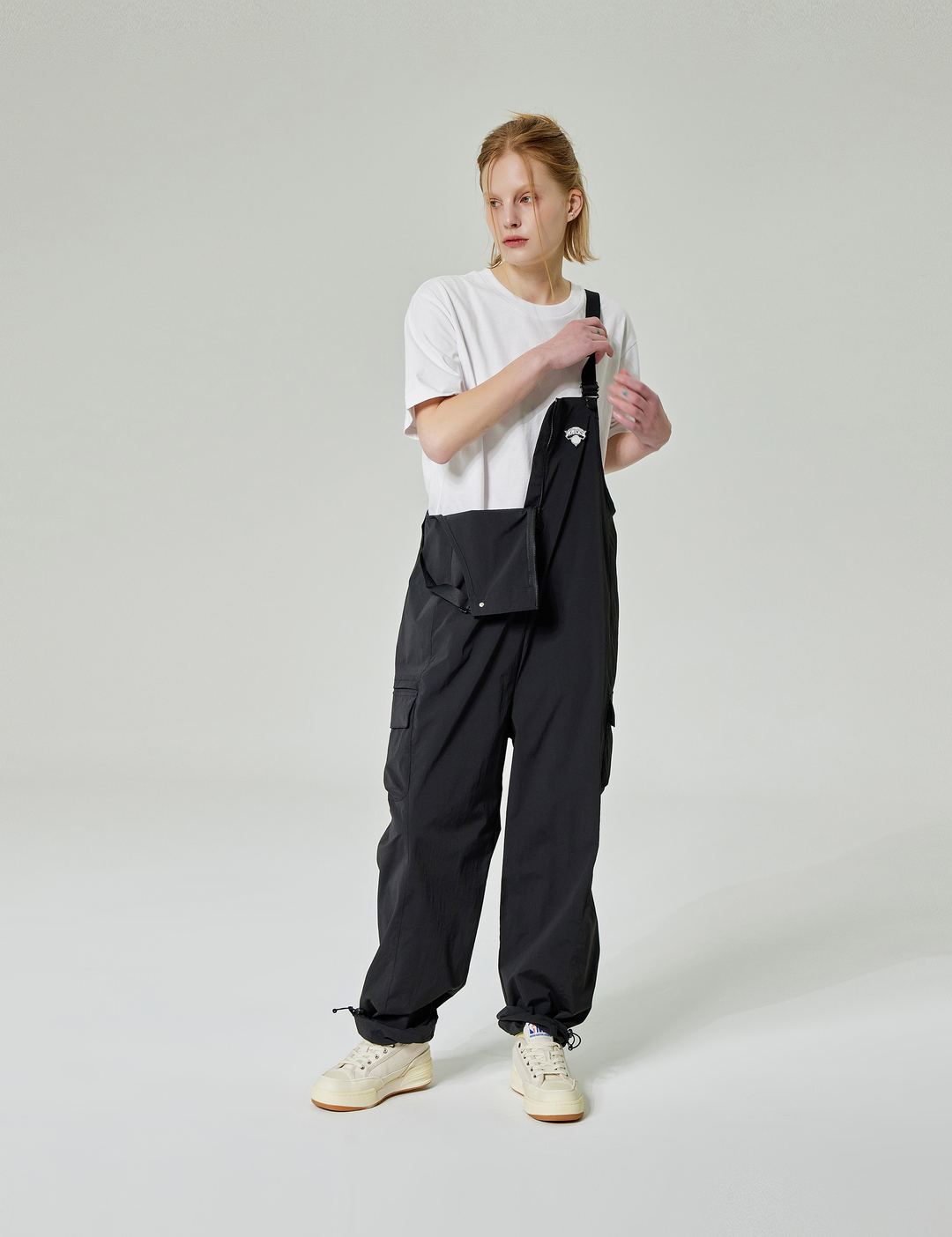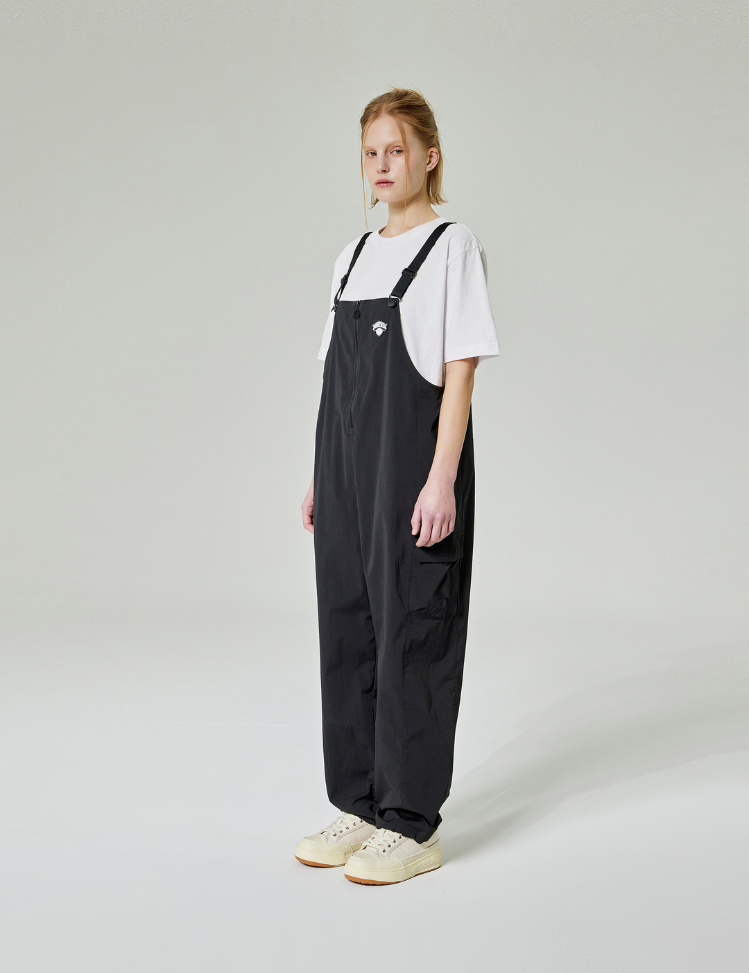 나일론 스판 소재를 사용하여 착장시 편안하게 착장할 수 있으며 여성 전용 오버롤 스타일로 귀엽게 스타일링 할수 있습니다