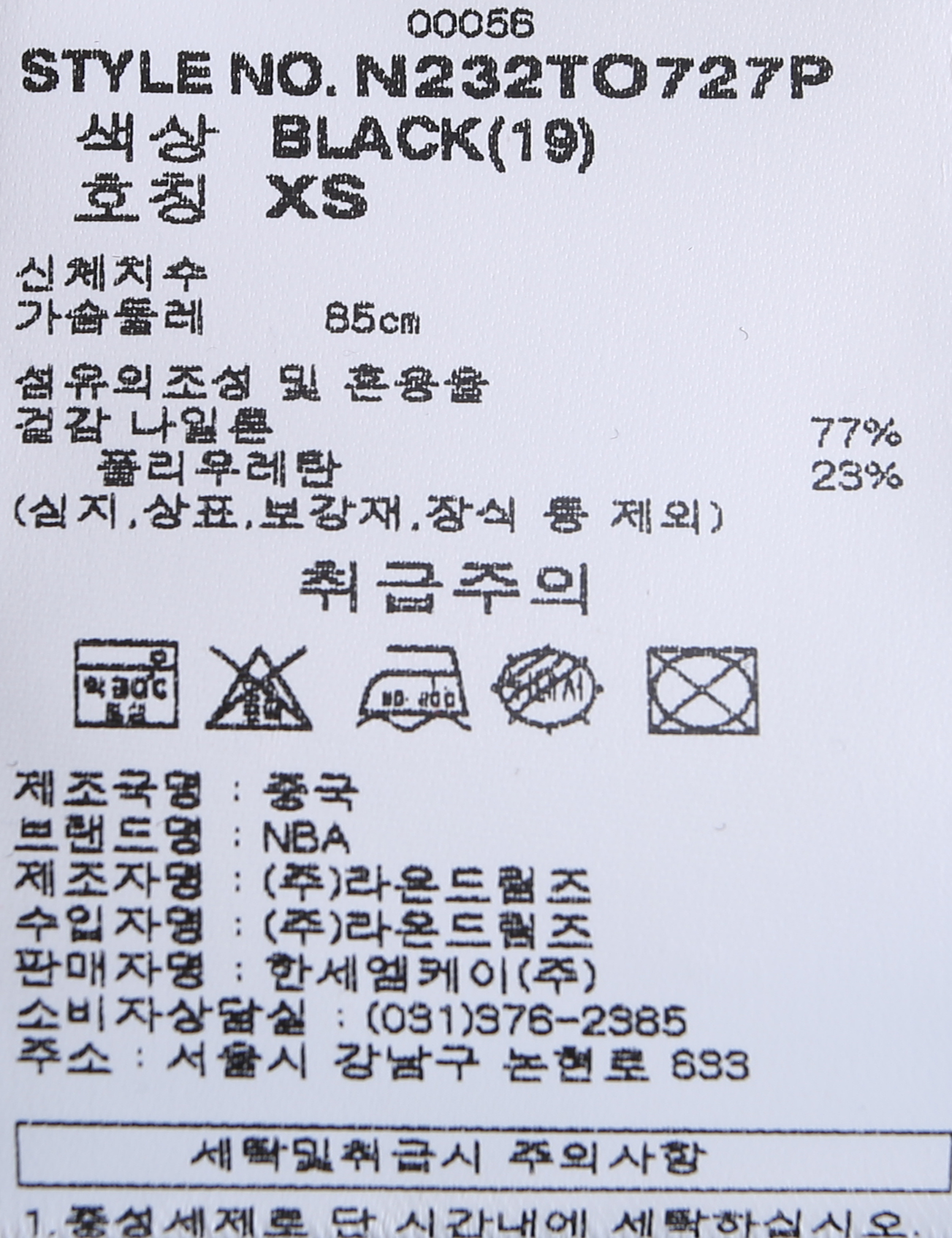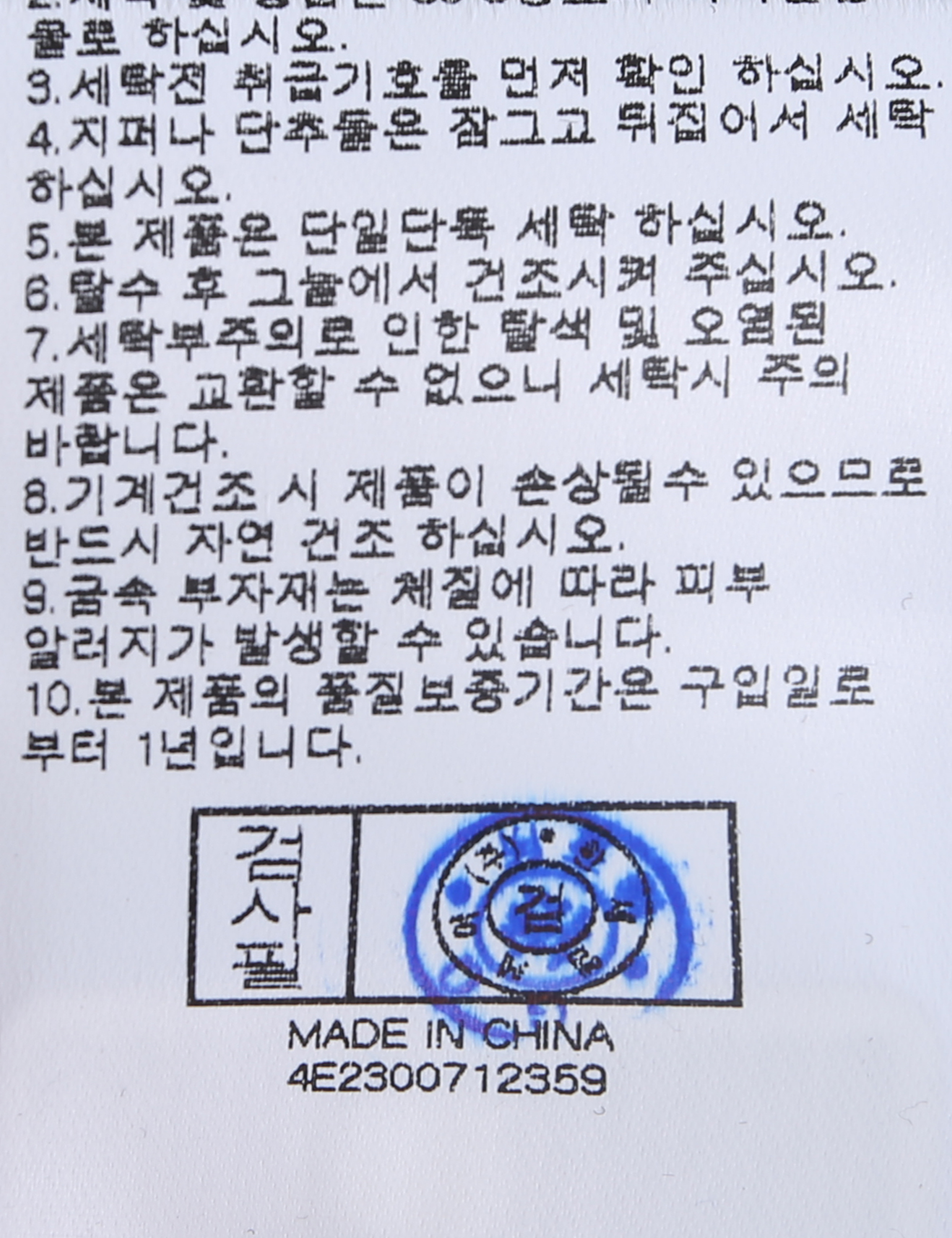 | 세탁방법 및 취급시 주의사항 | 중성세제로 단 시간내에 세탁하십시오.(케어라벨참고) |