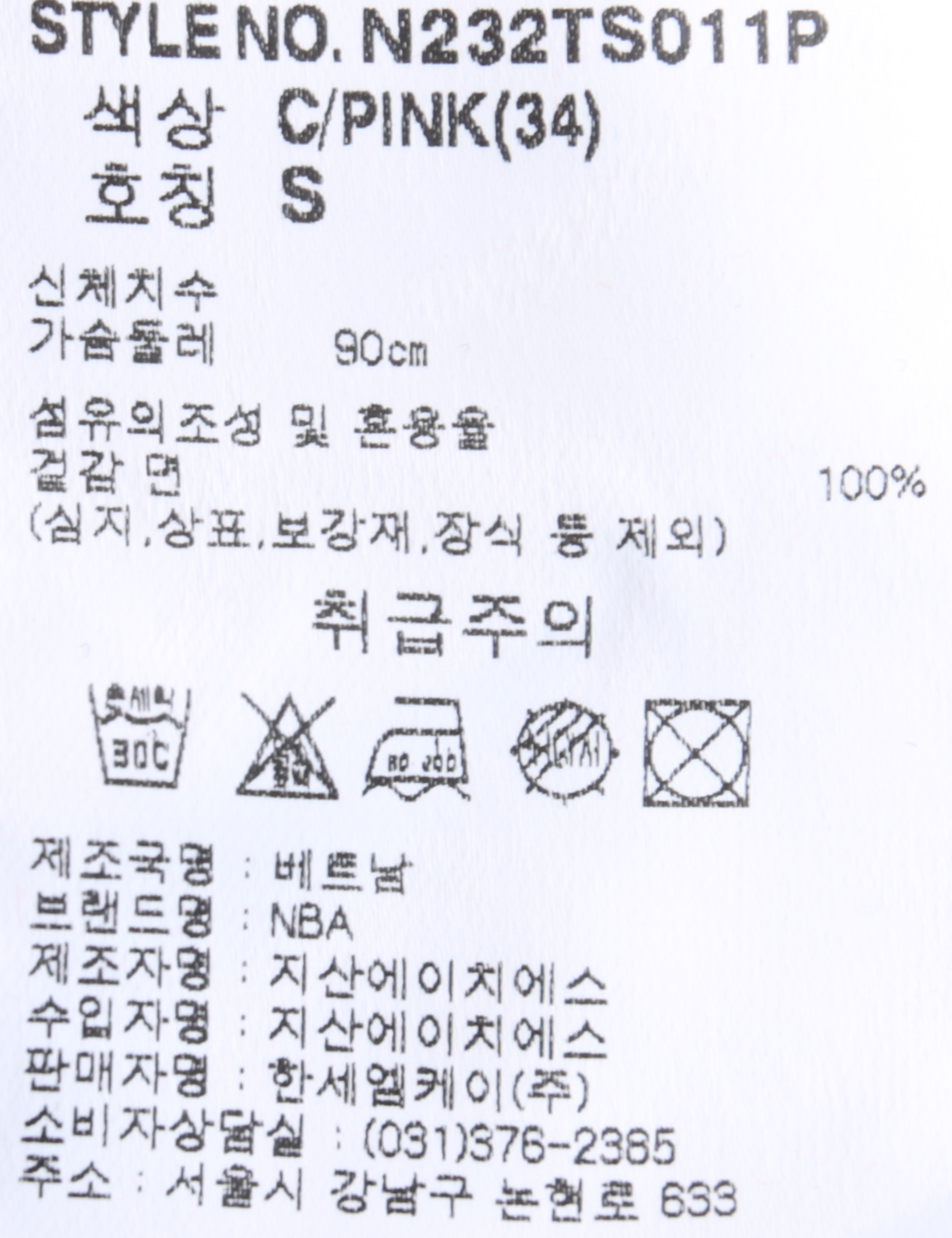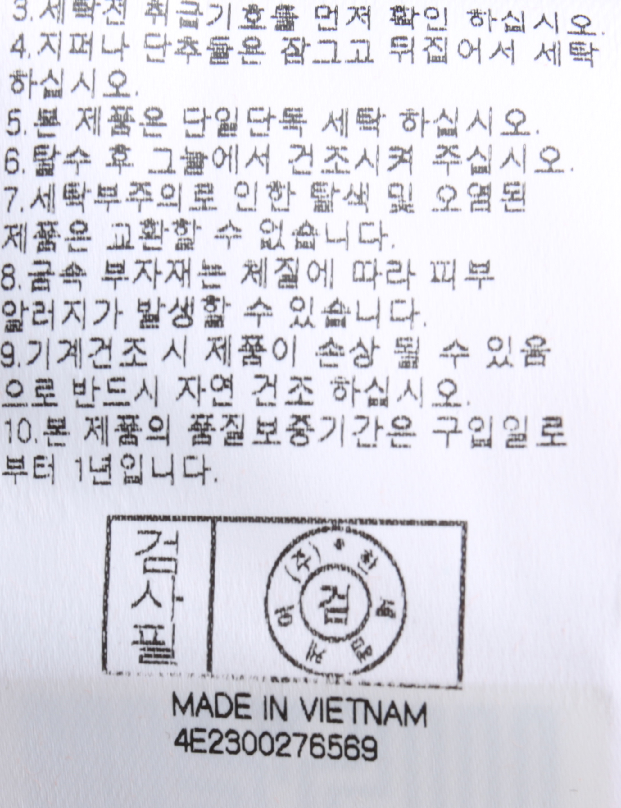 | 세탁방법 및 취급시 주의사항 | 본 제품은 손세탁 하십시오.(케어라벨참고) |
