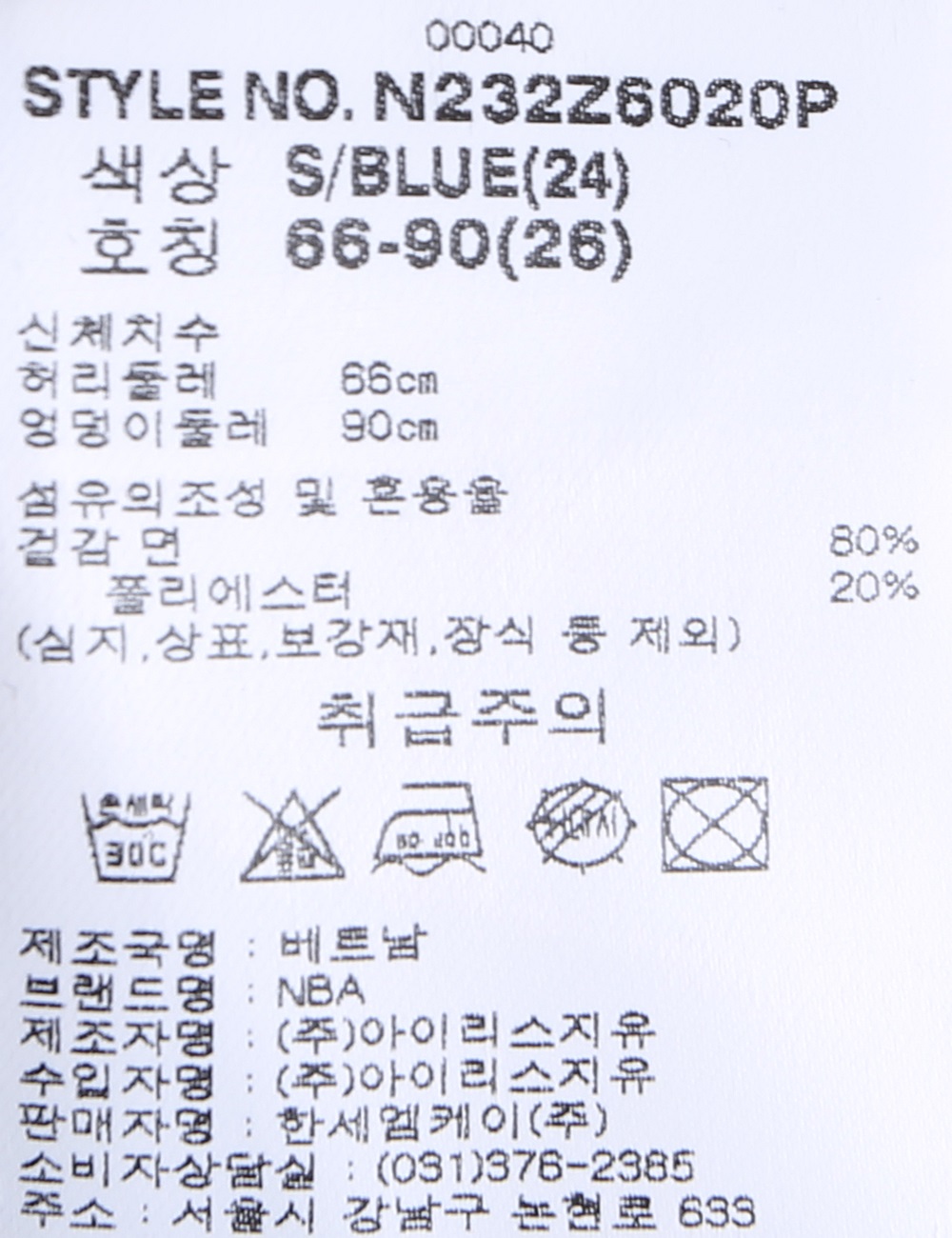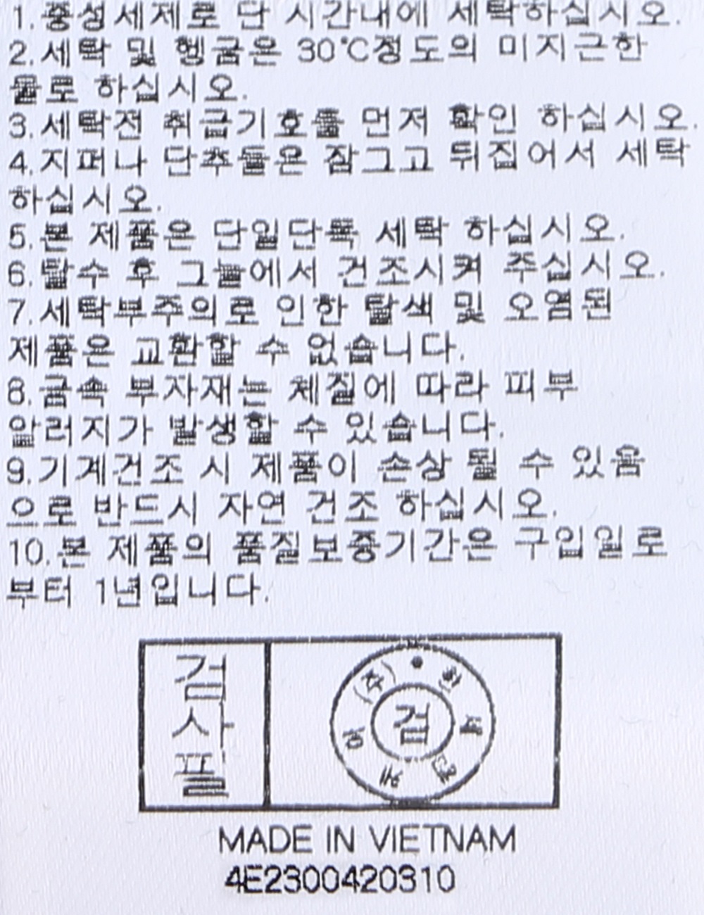 | 세탁방법 및 취급시 주의사항 | 본 제품은 손세탁 하십시오.(케어라벨참고) |
