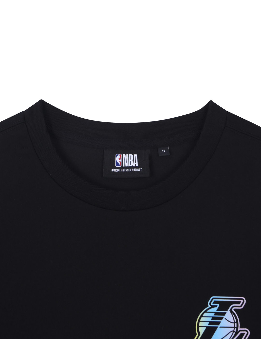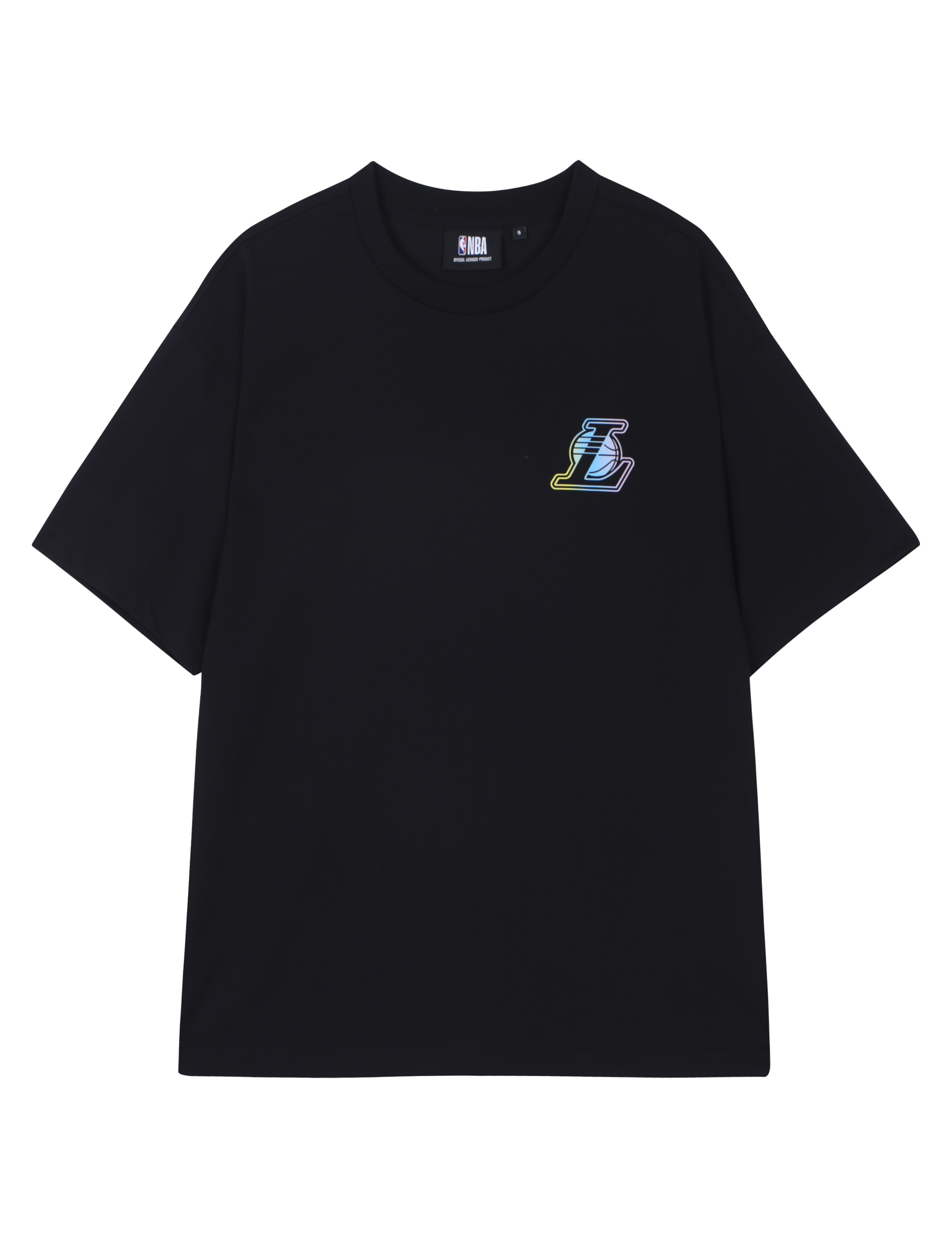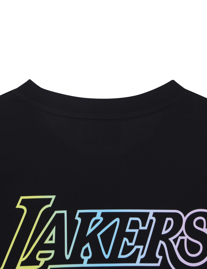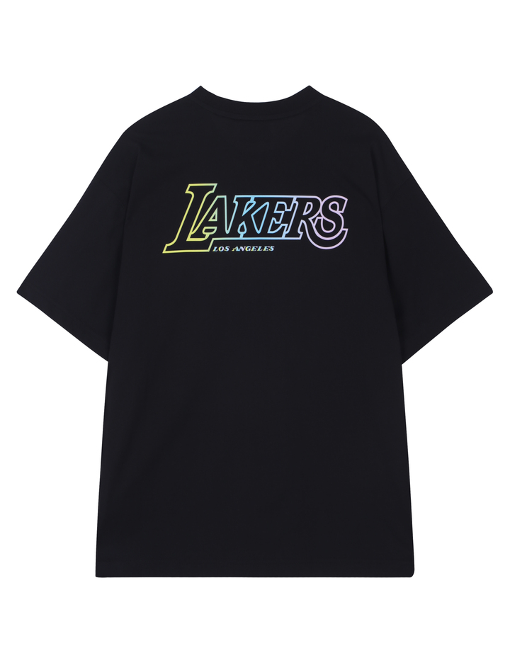 레이커스레터 프린트를 컬러 그라데이션으로 과감하게 표현한 오버핏 프린트 티셔츠