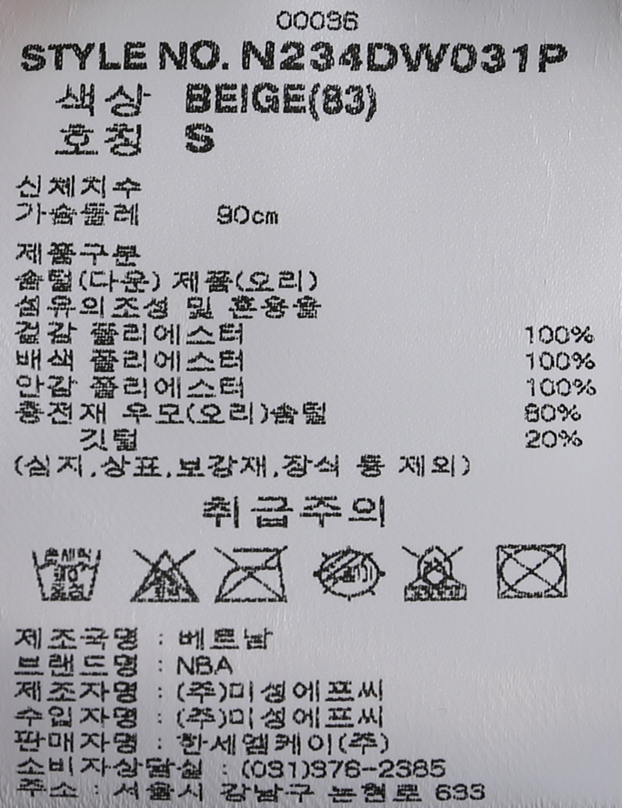 | 상품명 | LAL 베이직 푸퍼 다운(N234DW031P) |