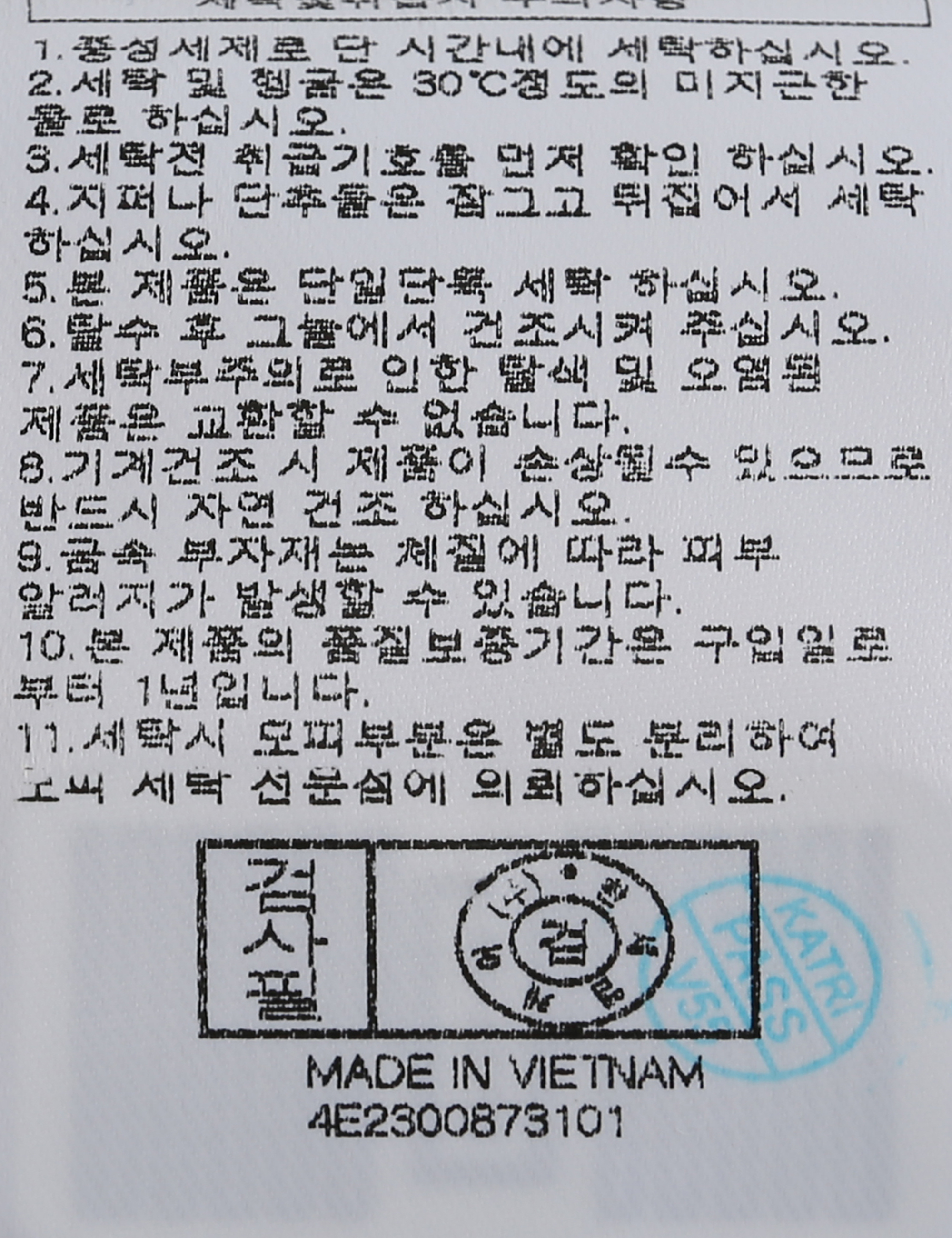 | 세탁방법 및 취급시 주의사항 | 본 제품은 손세탁 하십시오.(케어라벨참고) |