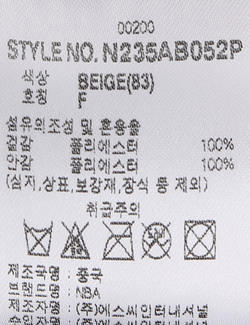 | 품질보증기준 | 세탁 불가 상품입니다.(세탁라벨참고) |