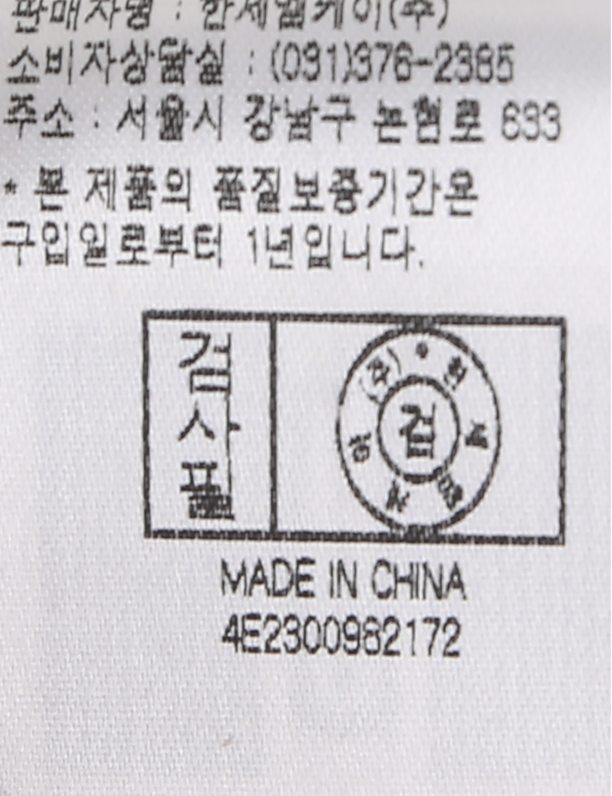 | 품질보증기준 | 물세탁 및 드라이 클리닝 하지 마십시오. (취급상 주의사항 참고) |