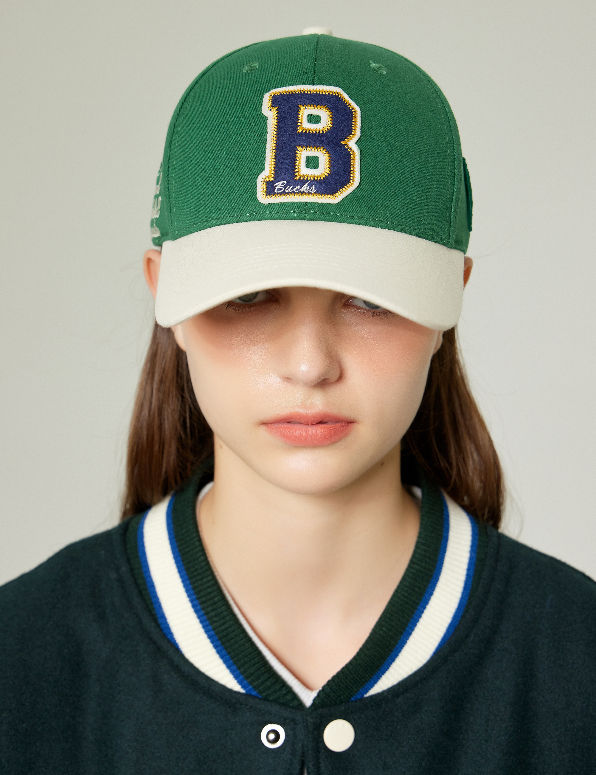 크라운이 자연스럽게 떨어지는 안정감 있는 핏으로 머리 전체를 자연스럽게 감싸주어 편안하면서도 캐쥬얼한 핏감을 제공.